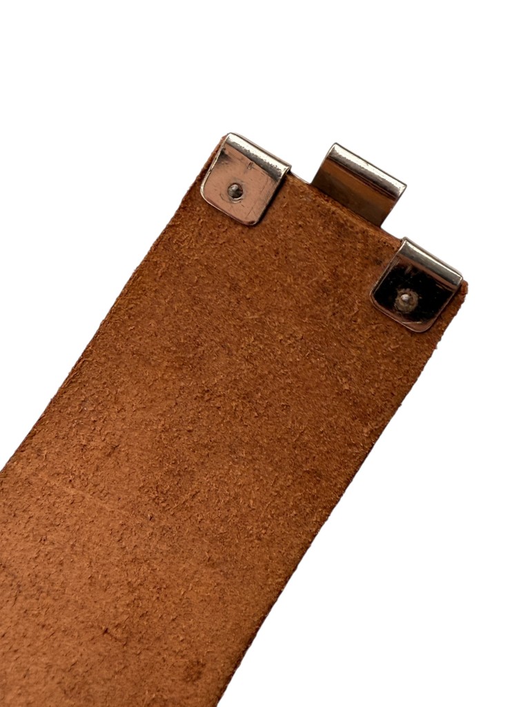 The buckle remains attached to its original leather belt, which measures 80 cm in length.