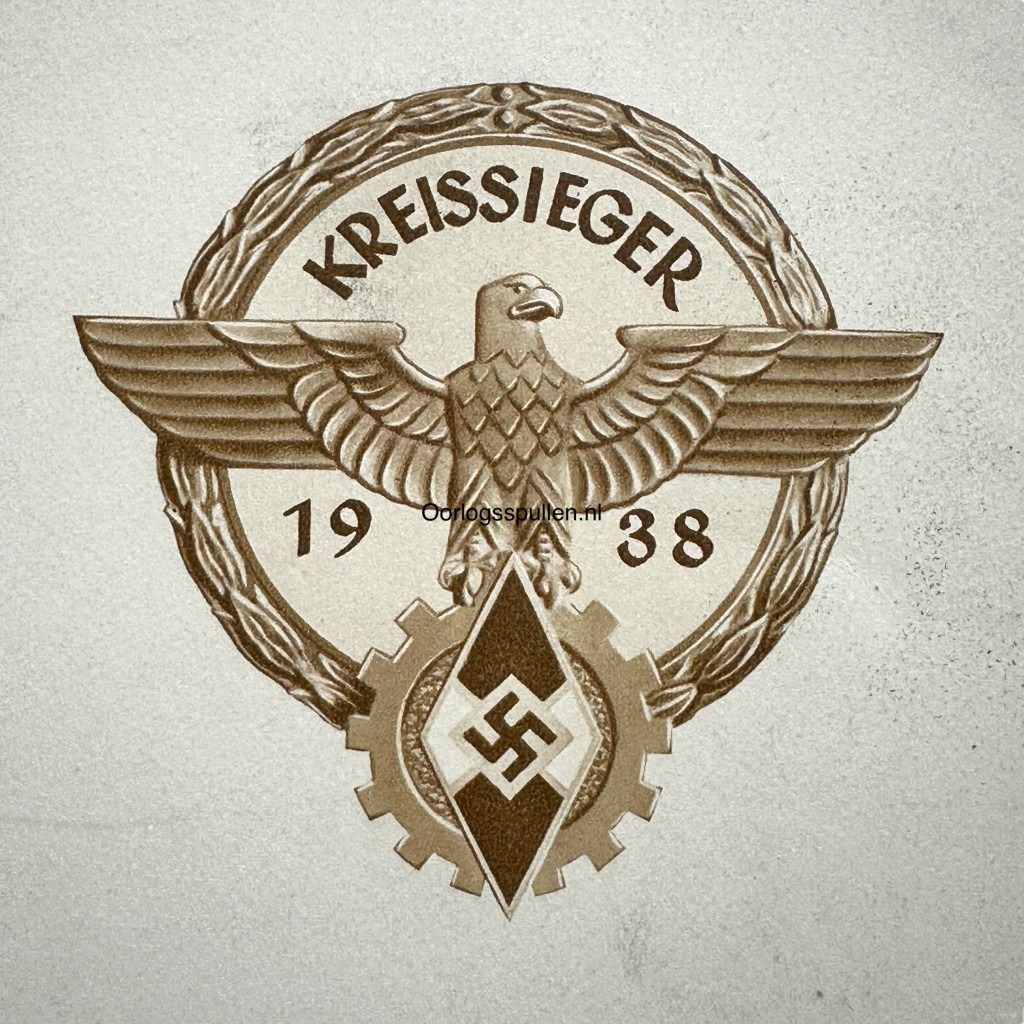Originele WWII Duitse Hitlerjugend Kreissieger oorkonde
