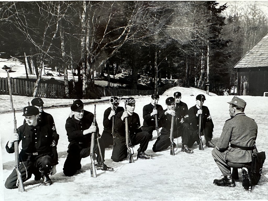 Deze Duitse foto is in goede conditie en daarop zijn de kinderen van de Hitlerjugend tijdens een militaire training in december 1943 te zien.