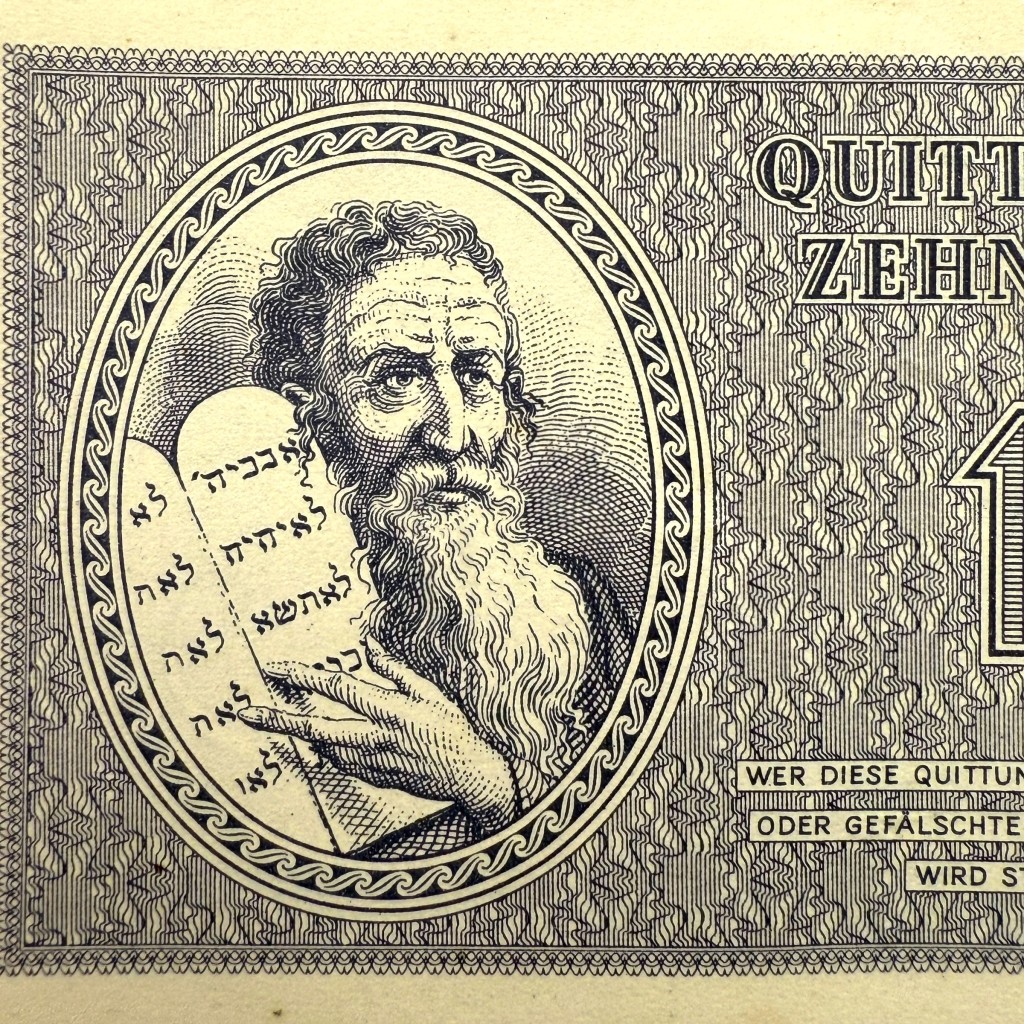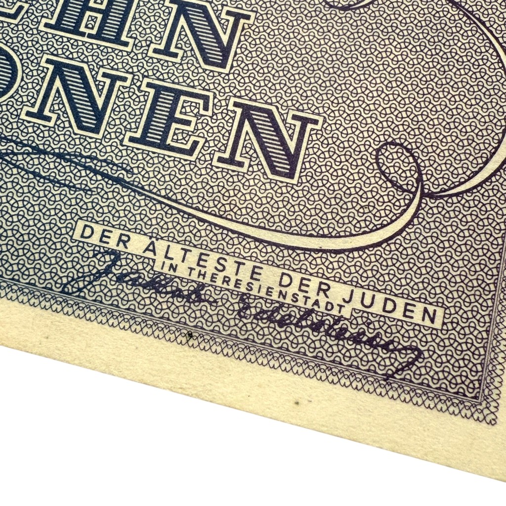 This 10 Kronen banknote was issued in the Theresienstadt (Terezín) ghetto and concentration camp during the Second World War.