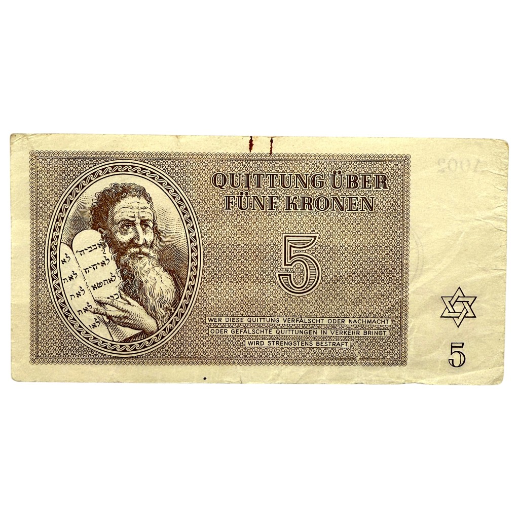 Original WWII German Jewish Ghetto/Camp Theresienstadt 5 Kronen banknote