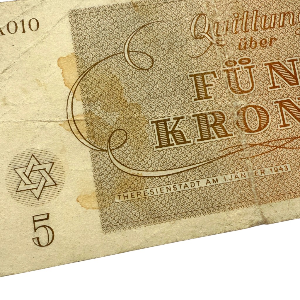 Original WWII German Jewish Ghetto/Camp Theresienstadt 5 Kronen banknote