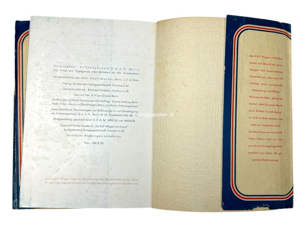 Originele WWII Duitse KDF-Wagen Volkswagen Kever handleiding