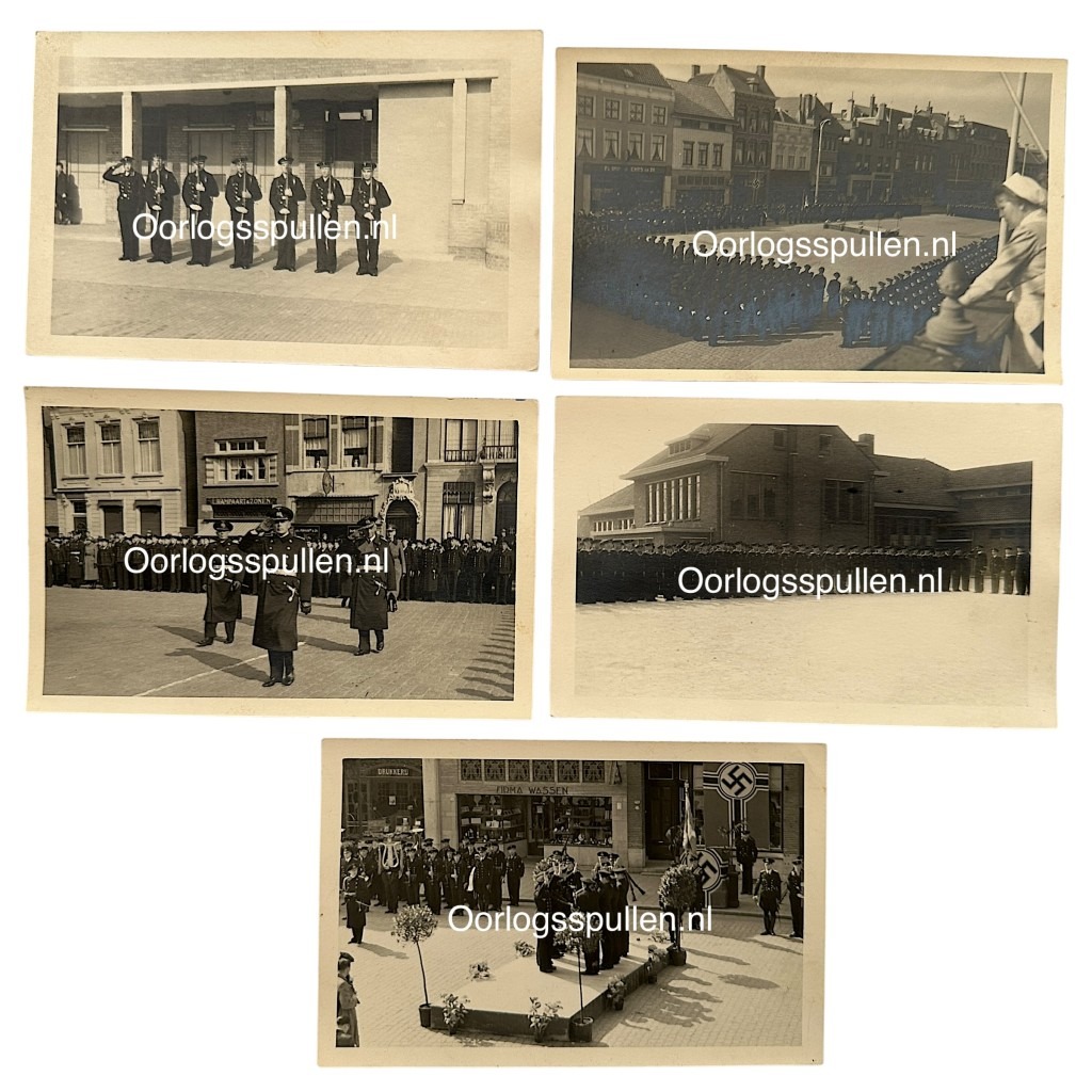 Deze set van 5 Duitse foto’s zijn in goede conditie en daarop is een ceremonie van de Kriegsmarine in Roosendaal op te zien.