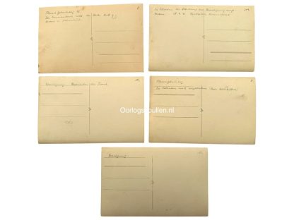 De foto’s zijn op postkaart formaat afgedrukt en beschreven aan de achterzijde.