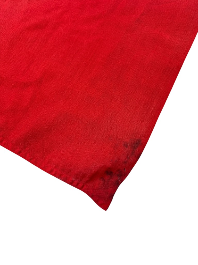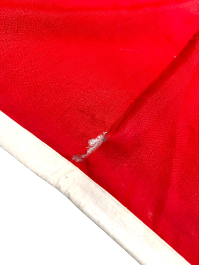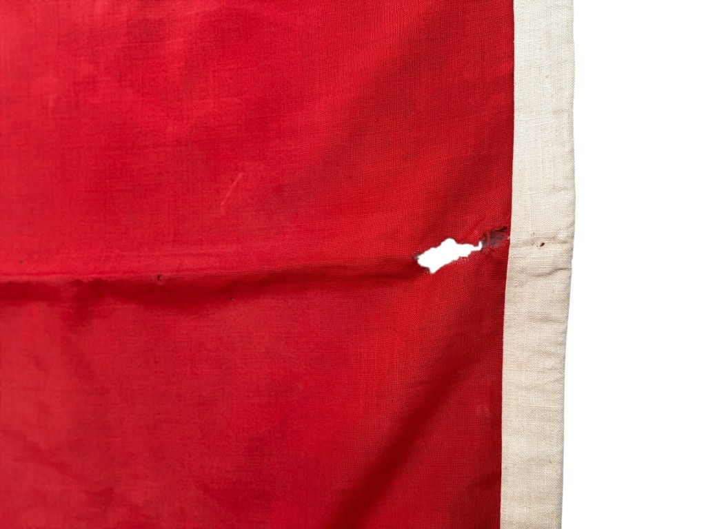 Deze vlag heeft sporen van ouderdom, lichte schade, verkleuringen en slijtageplekken.