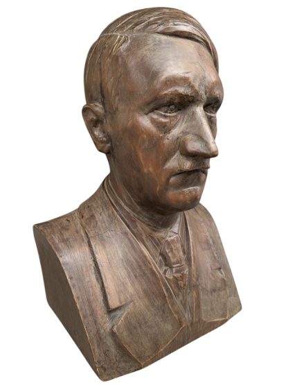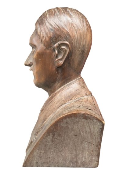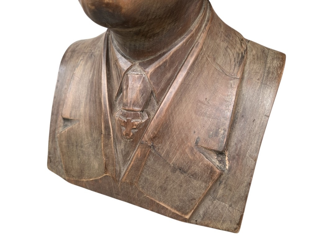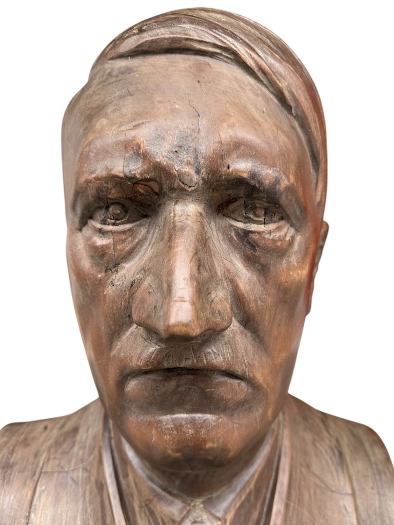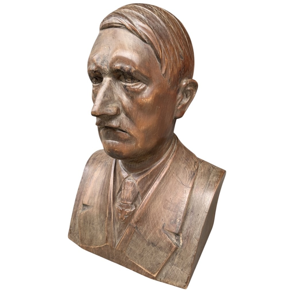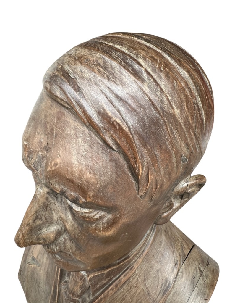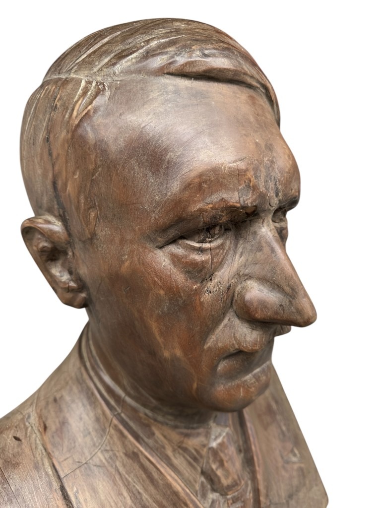 The large sized wooden carved Adolf Hitler bust is in good condition and was found in Graz (Austria).