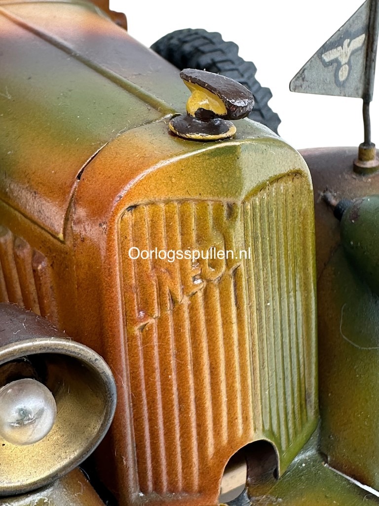 This rare German military toy car by Lineol was produced in Germany around 1939–1945.