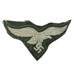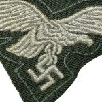 This Luftwaffe breast eagle is in mint condition, has a green background and was worn on Luftwaffe field division jacket or Fallschirmjäger jump smock.