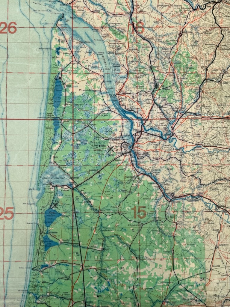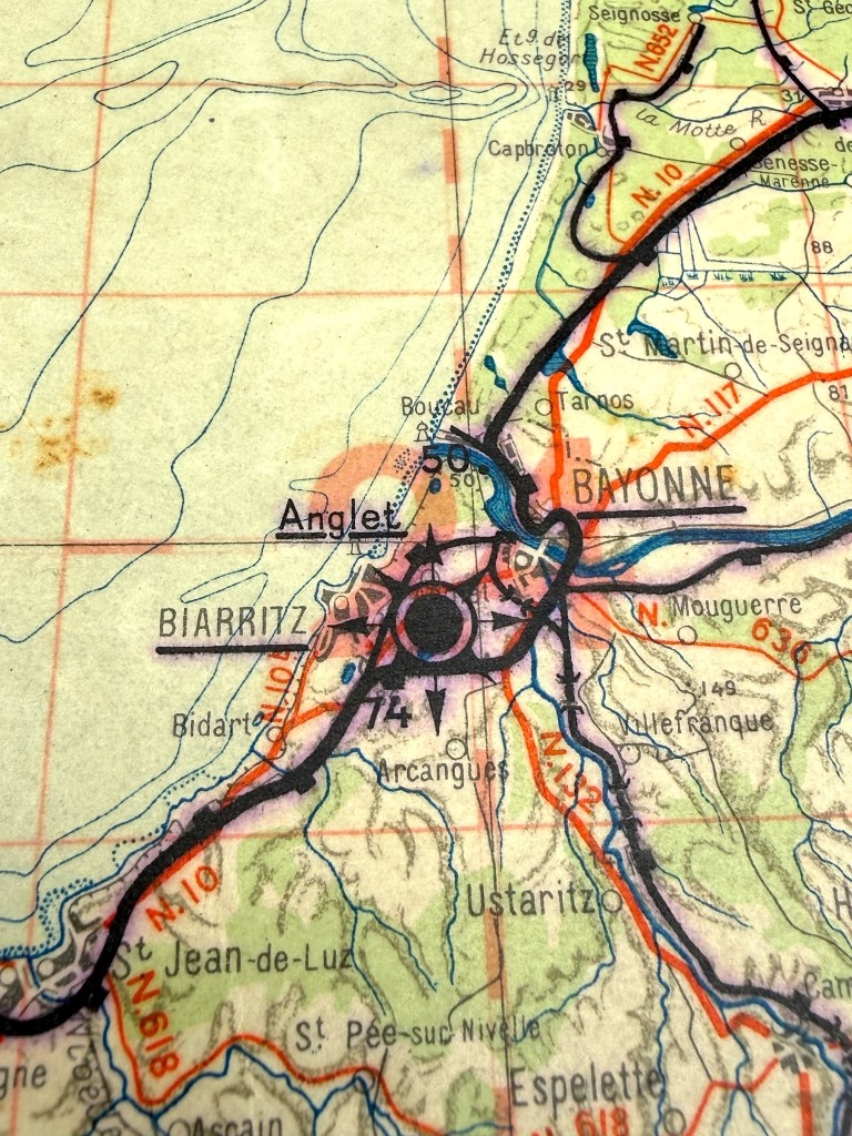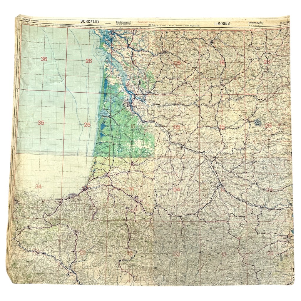 Original WWII German Luftwaffe Fliegerkarte Bordeaux – Limoges – Biarritz – France
