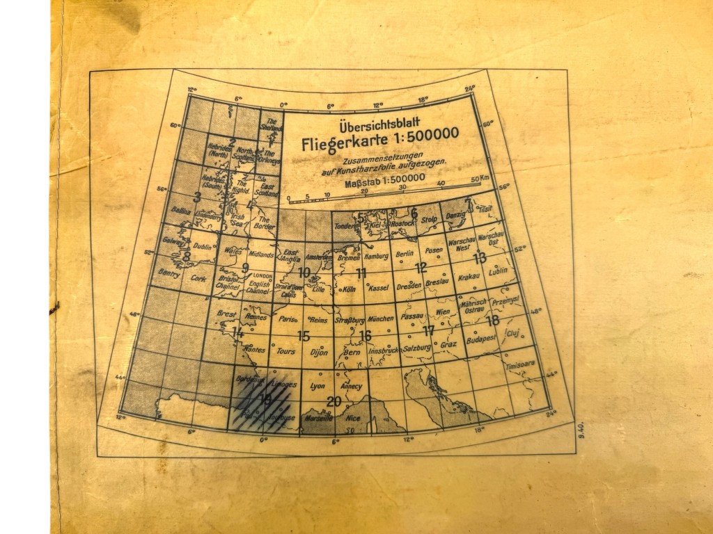 Such maps were used by Luftwaffe crews during missions and training flights between 1939 and 1945.