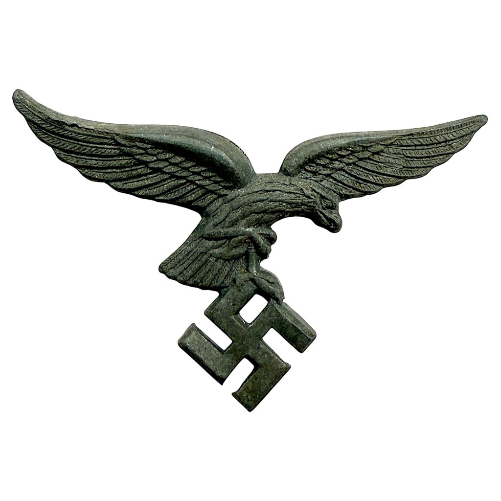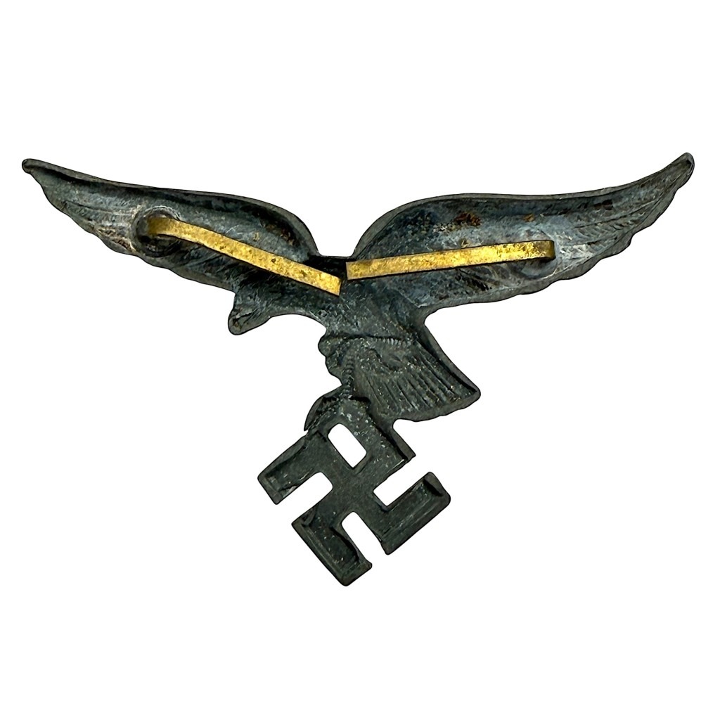 Original WWII German Luftwaffe metal visor cap eagle insignia