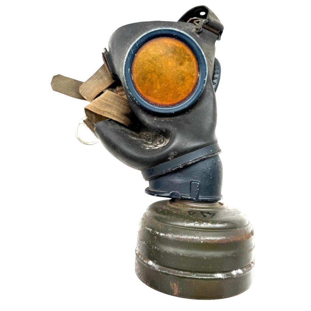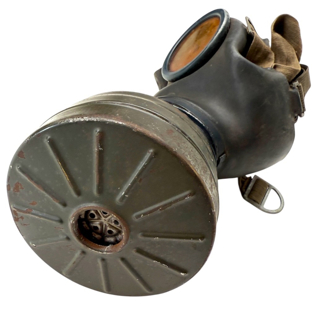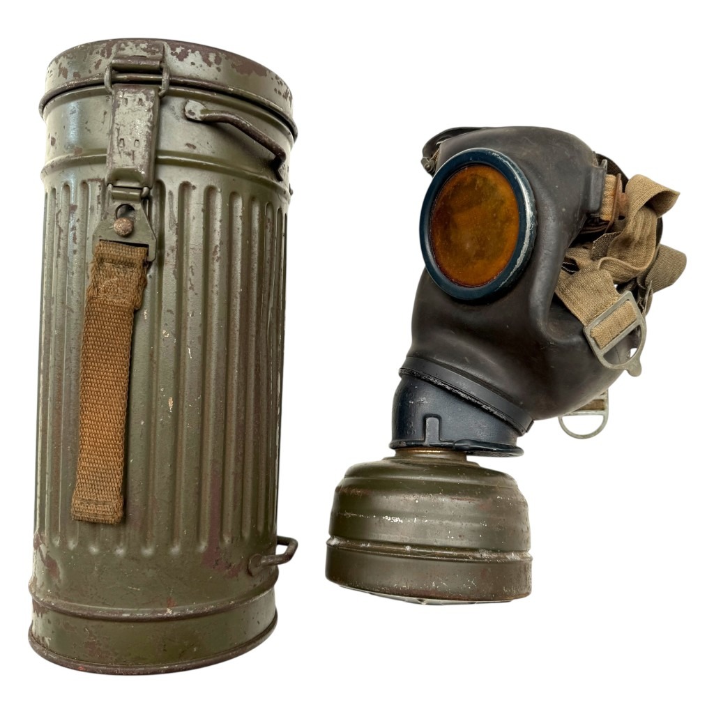 This German M31 gas mask with canister is in used condition and dates back to the Second World War.