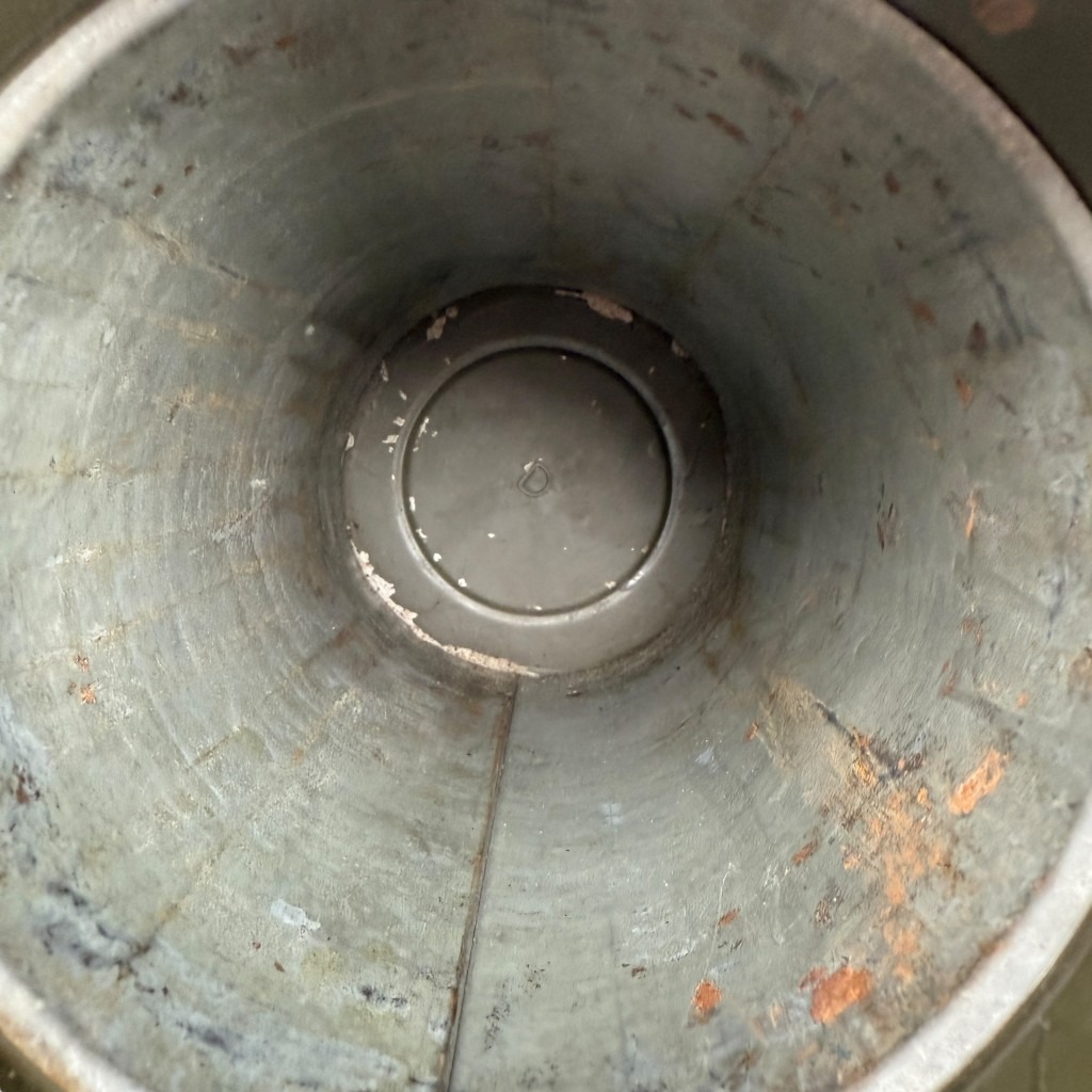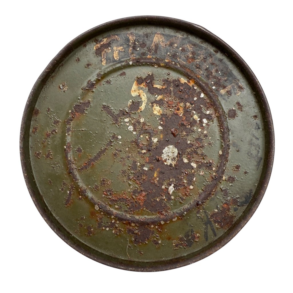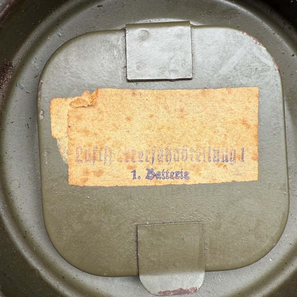 The inside of the canister still contains the paper label with the stamp of Luftsperrabteilung 1, 1st Battery.