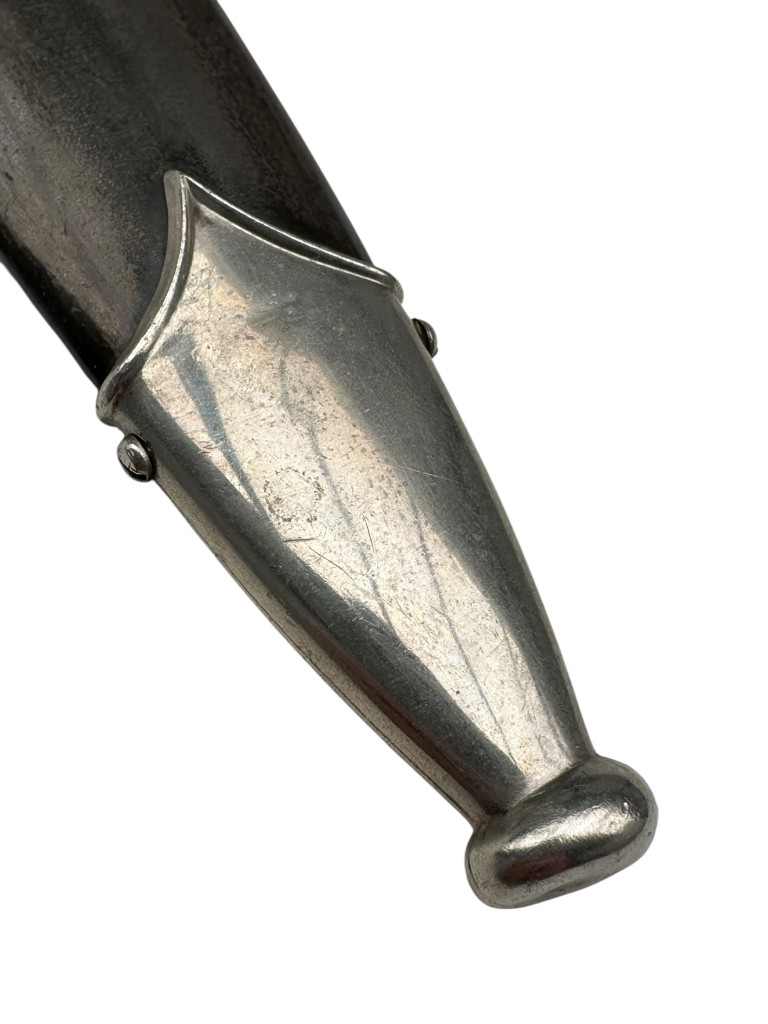 This early German M33 SS dagger is a historically correct example featuring nickel-silver fittings, characteristic of production from the early years (circa 1933–1936).