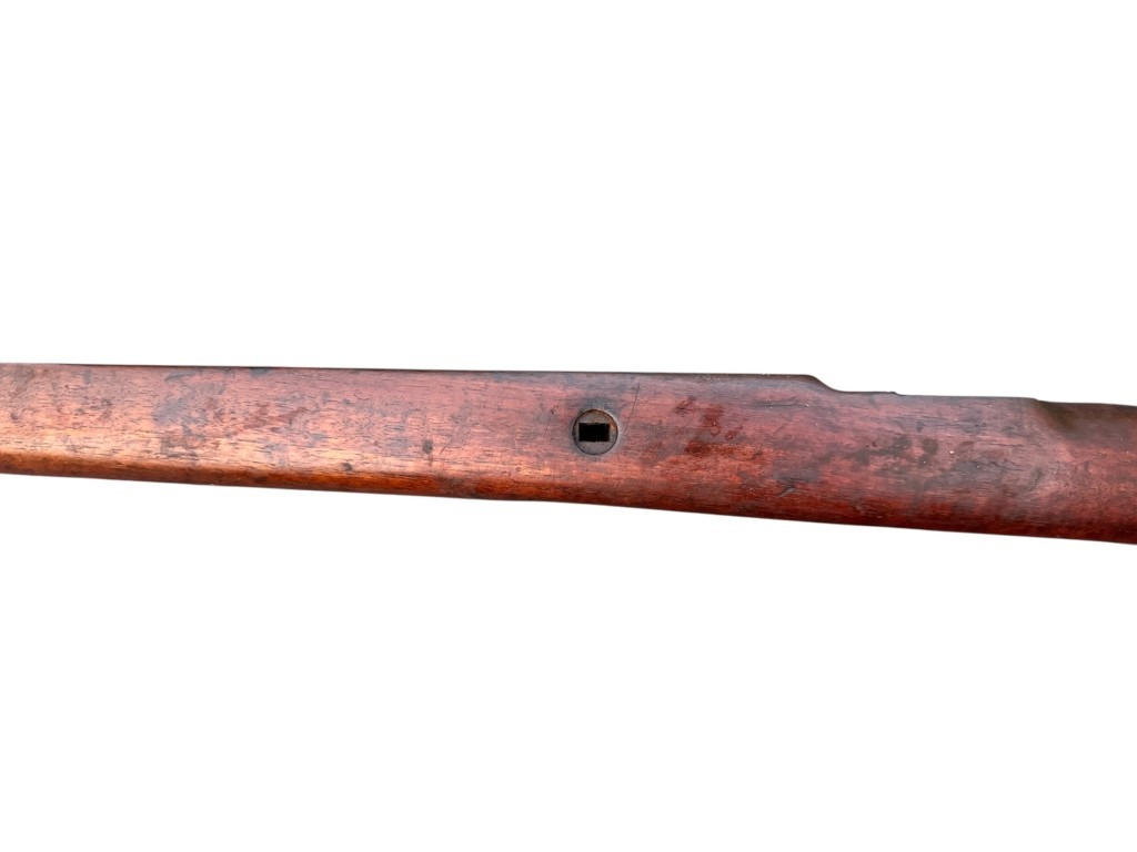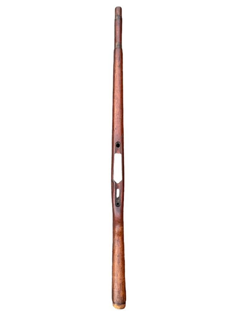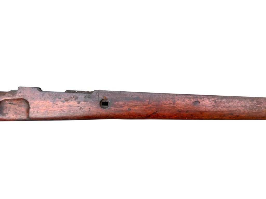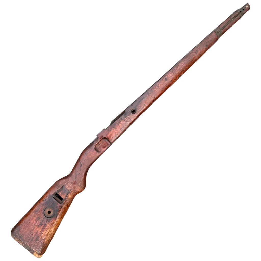 Many of the Mauser K98 wooden stocks were shortened after the war, this is not the case with this one and it has its original length!