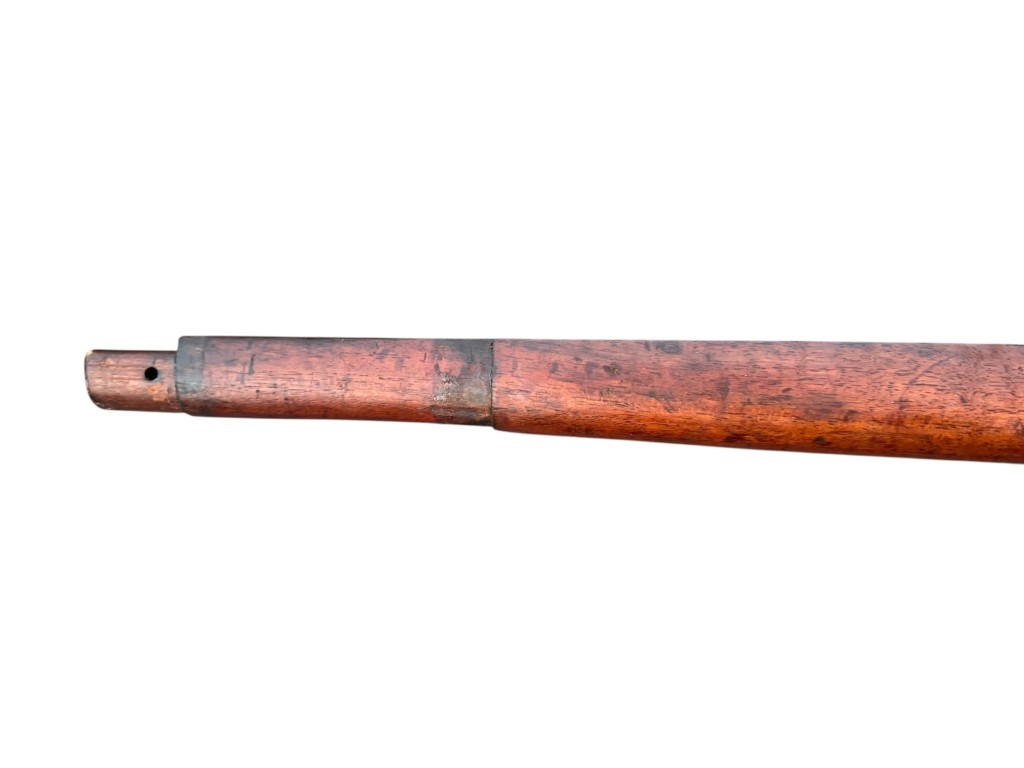 Regelmatig werden de Mauser K98 houten kolven ingekort na de oorlog, dit is niet het geval bij deze en deze heeft nog de originele lengte!