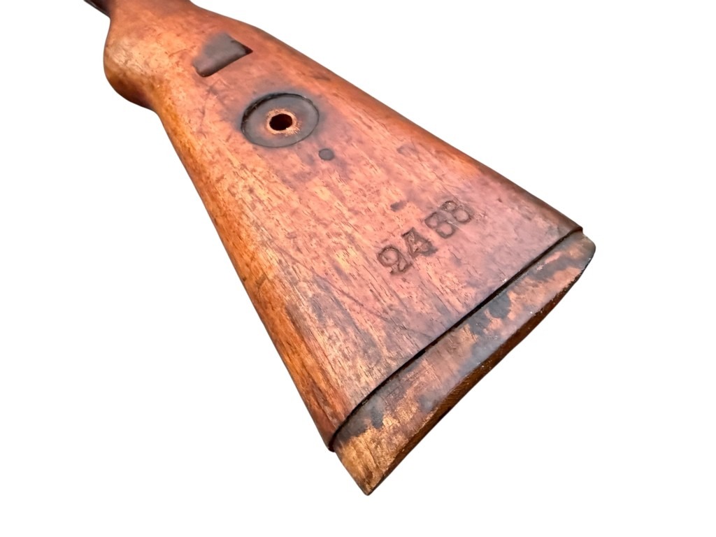 Deze Duitse houten kolf is in goede conditie en werd gebruikt op het Mauser K98 geweer.