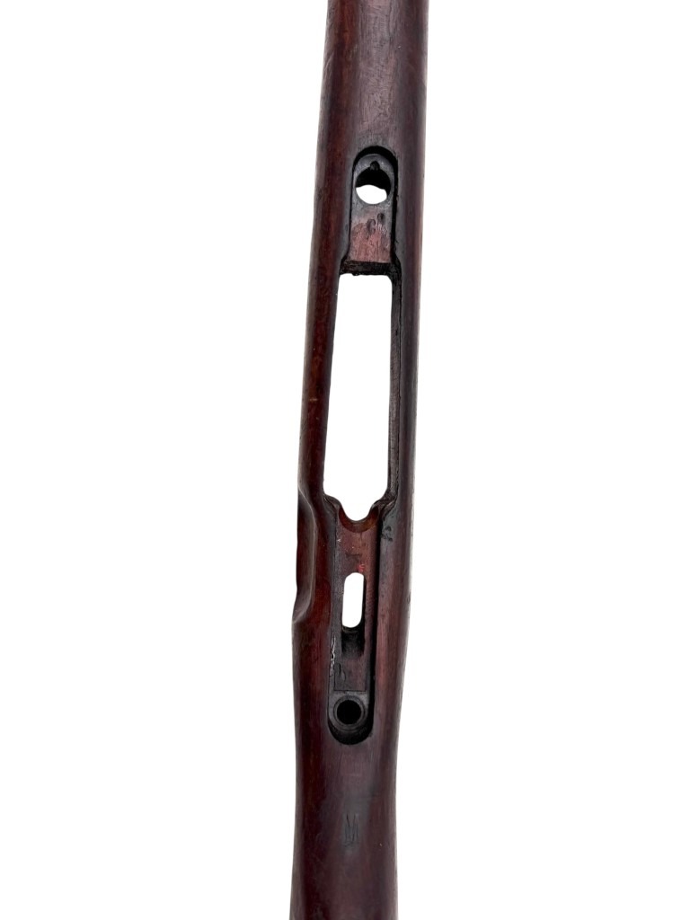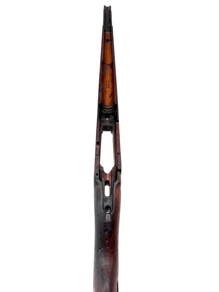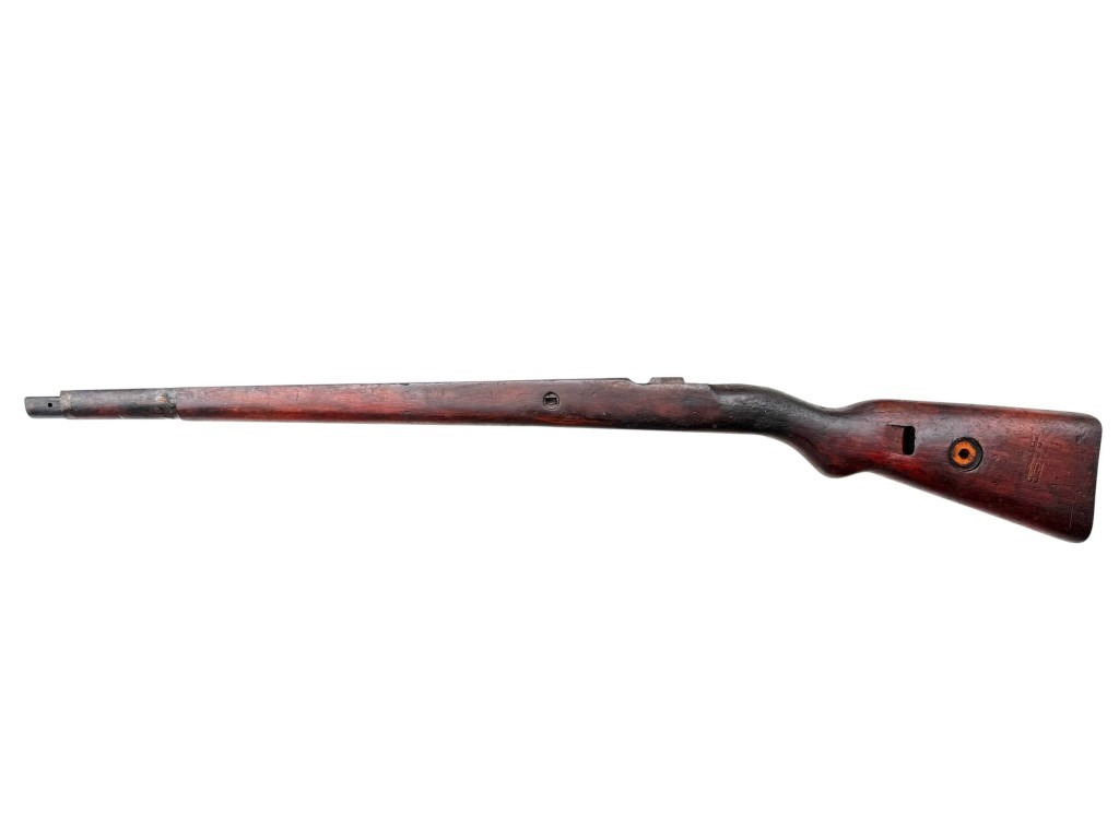 Many of the Mauser K98 wooden stocks were shortened after the war, this is not the case with this one and it has its original length!
