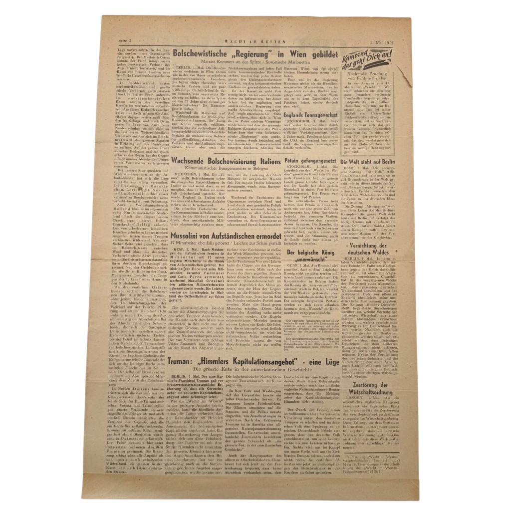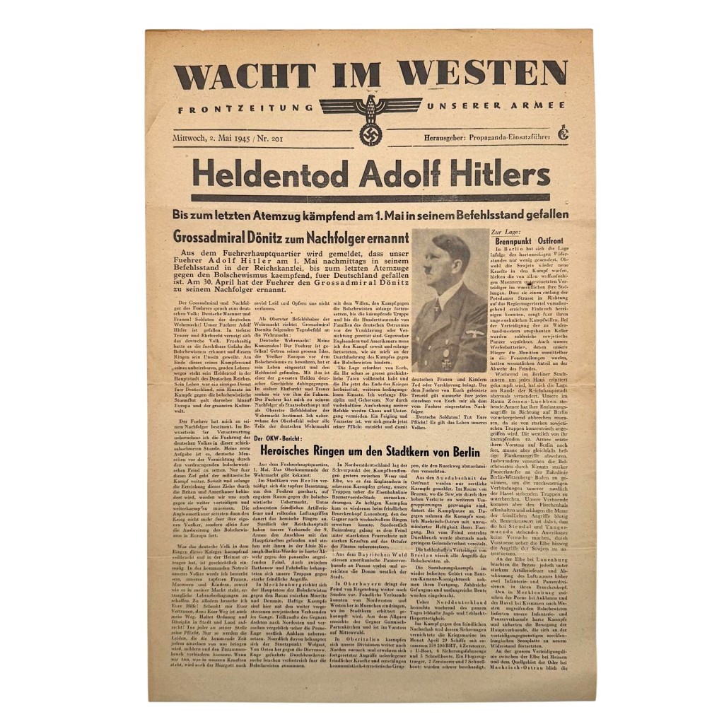 Original WWII German newspaper ‘Wacht im Westen’ with death of Adolf Hitler – May 2, 1945