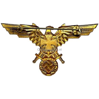 Deze goudkleurige borst adelaar is in goede conditie, compleet met functionele speld aan de achterzijde en werd gedragen door de NS-Marine Soldatenbund tijdens de Tweede Wereldoorlog.