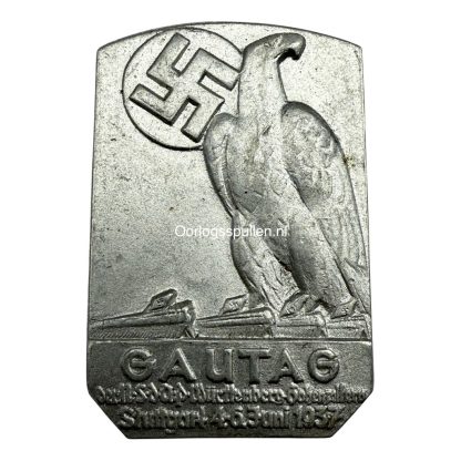 Deze Duitse speld is in goede conditie en werd voor de uitgegeven voor de NSDAP “Gautag” in Stuttgart, 4-6 juni 1937.