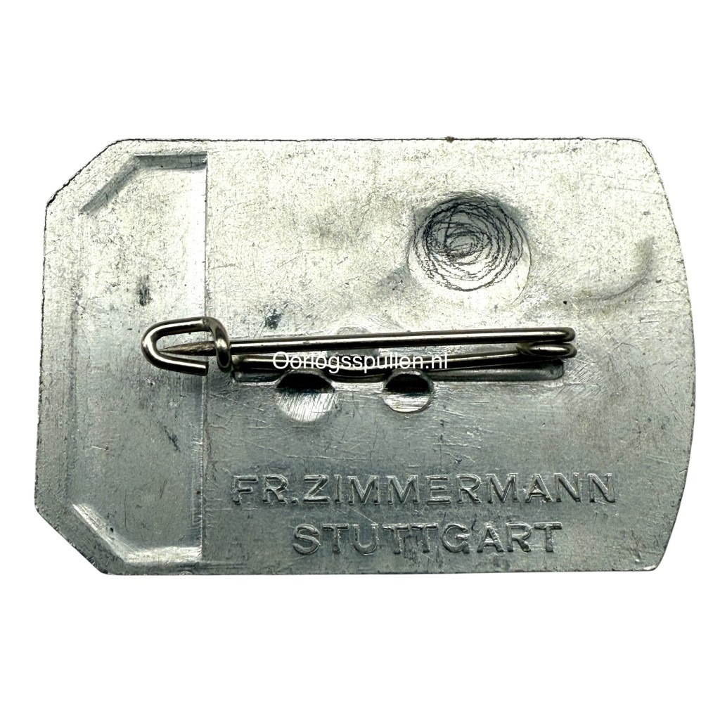 Zilverkleurige afwerking met stevige speldbevestiging en de achterzijde is gemerkt met “Fr. Zimmermann, Stuttgart”.