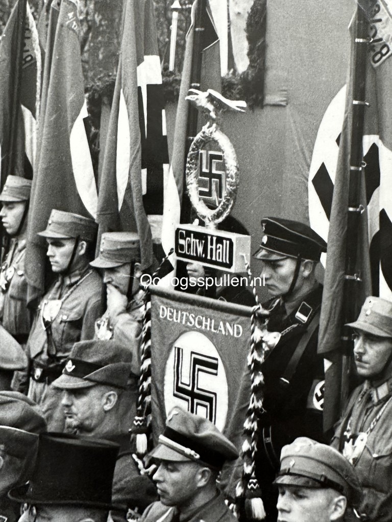 Original WWII German NSDAP photo with Deutschland Erwache standard Schw.Hall