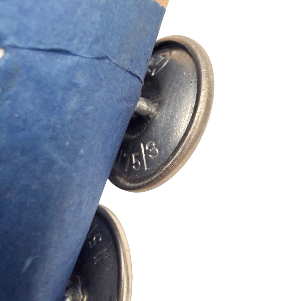 De achterzijde met bevestigingsogen is intact en goed zichtbaar. Een interessant historisch verzamelobject voor militaria- en WOII-collecties.