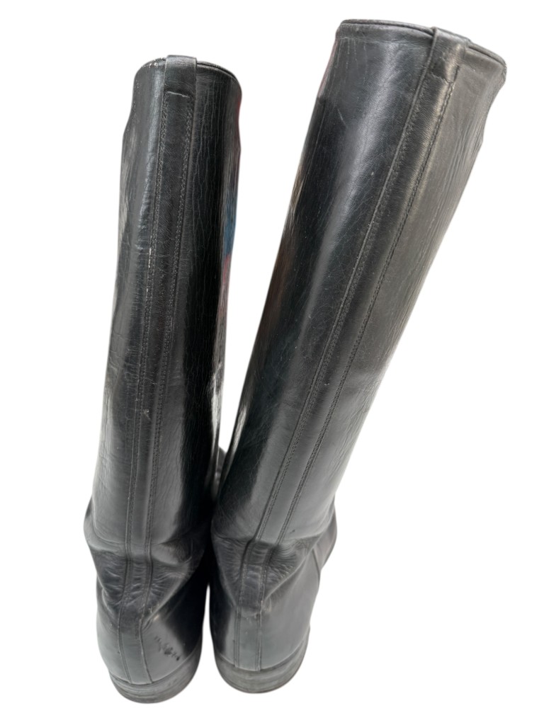 The shafts are tall and firmly shaped, with the original leather lining and pull tabs still present on the inside.