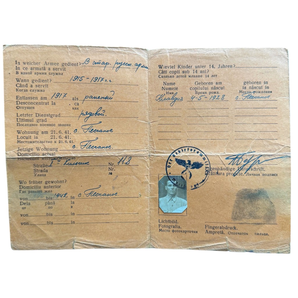 Original WWII German Personalausweis / Legitimatia Peschanoe in Ukraine