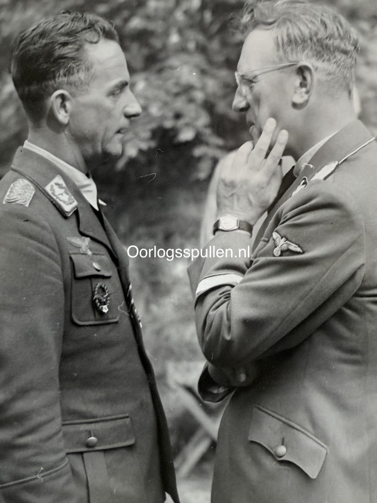 Deze Duitse foto uit de Tweede Wereldoorlog waarop SS-Obergruppenführer Dr. Arthur Seyss-Inquart, Rijkscommissaris voor de bezette Nederlanden, samen met een Luftwaffe-generaal is afgebeeld.