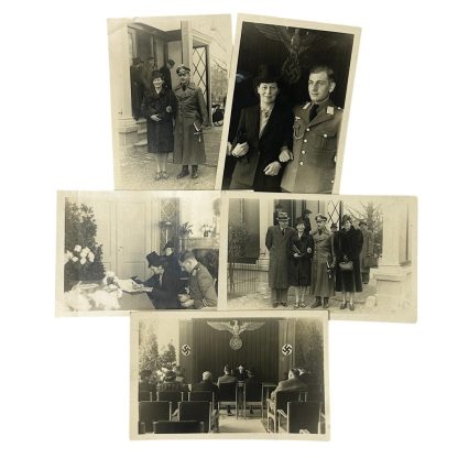 Deze set van 5 Duitse foto’s zijn in goede conditie en werden genomen tijdens de trouwerij van een Duitse diplomaat in Den Haag.