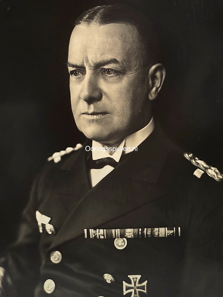 Deze originele Duitse portretfoto uit de Tweede Wereldoorlog toont Oberbefehlshaber der Kriegsmarine Generaladmiral Erich Reader.