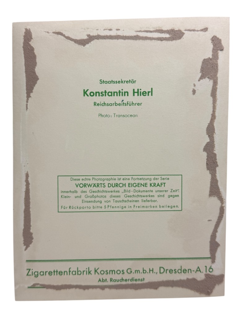 Deze originele Duitse portretfoto uit de Tweede Wereldoorlog toont Reichsarbeitsführer Konstantin Hierl.