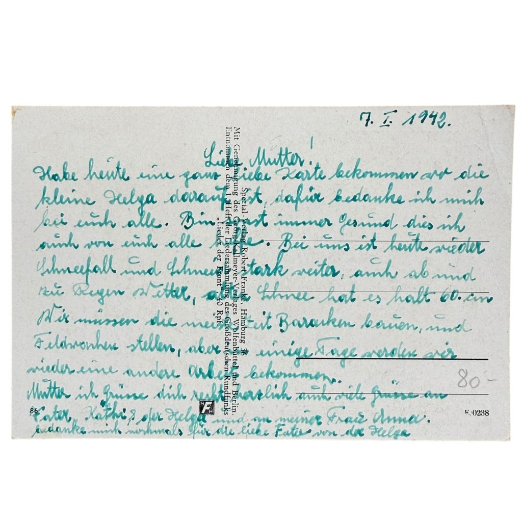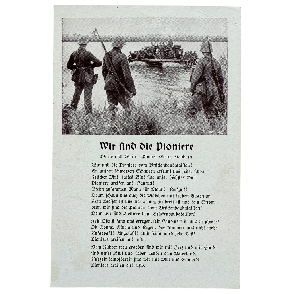Deze Duitse postkaart is in goede conditie en daarop is het Duitse lied Wir Sind die Pioniere te zien.