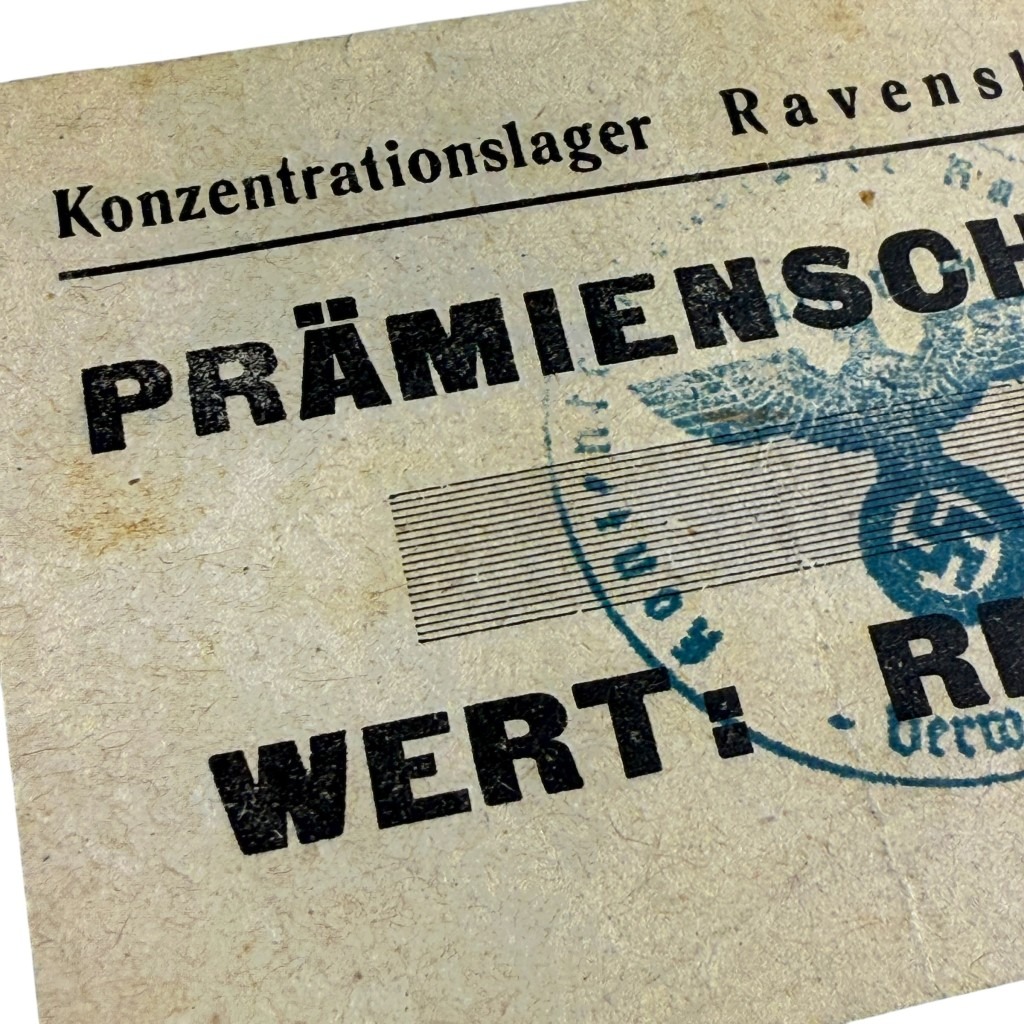 Original WWII German Prämienschein 1 RM concentration camp Ravensbrück