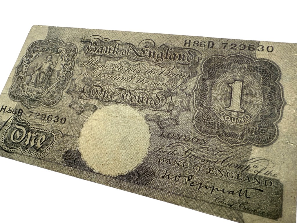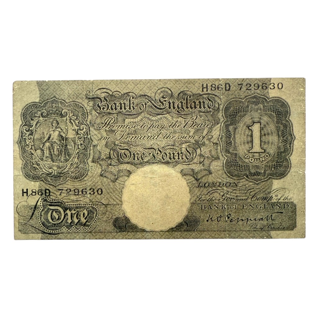 Dit propaganda strooibiljet werd door de Duitsers tijdens de Tweede Wereldoorlog verspreid in Noord-Afrika voornamelijk in gebieden waar Britse invloed groot was zoals Egypte. De voorzijde lijkt sterk op een echt Brits £1-bankbiljet, compleet met serienummer, zegel en ondertekening, om de aandacht van de vinder te trekken. De achterkant is echter bedrukt met Arabische tekst, waarin anti-Britse propaganda wordt verspreid. De tekst probeert Arabische lezers ervan te overtuigen dat Groot-Brittannië haar vroegere macht en rijkdom heeft verloren en dat het Britse pond zijn waarde niet meer heeft.