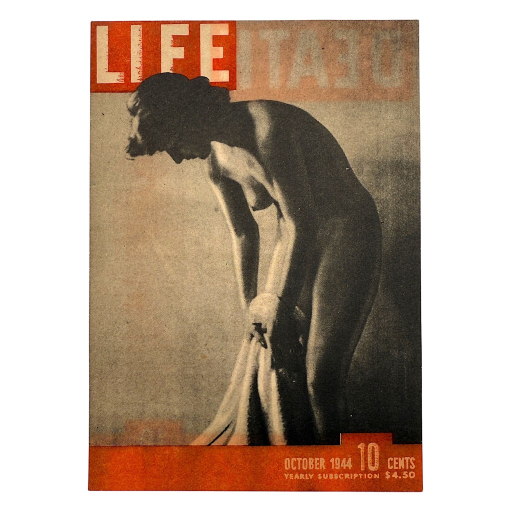 This German propaganda leaflet from 1944 is a striking example of visual and psychological warfare aimed at undermining the morale of Allied soldiers. The leaflet parodies the well-known American magazines LIFE and DEATH, using contrasting imagery—a skull wearing a helmet and a nude woman—to evoke fear, uncertainty, and homesickness.