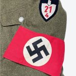 The Reichsarbeitsdienst uniform is in good condition and includes the jacket with armband and trousers.