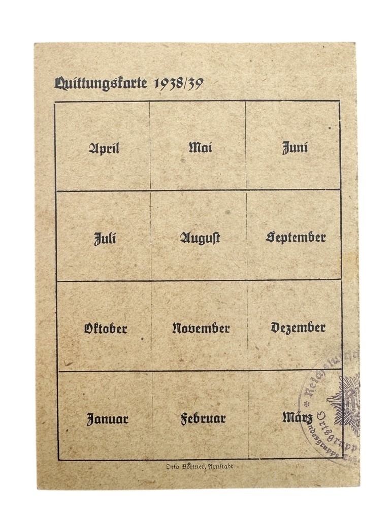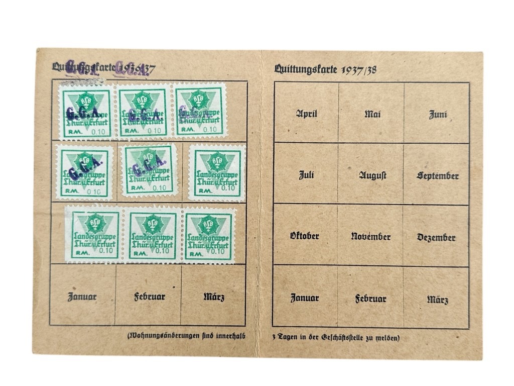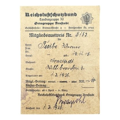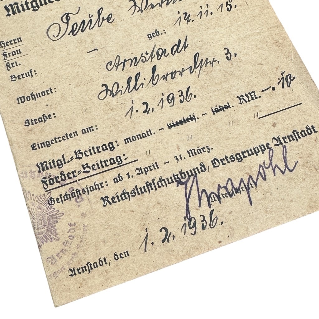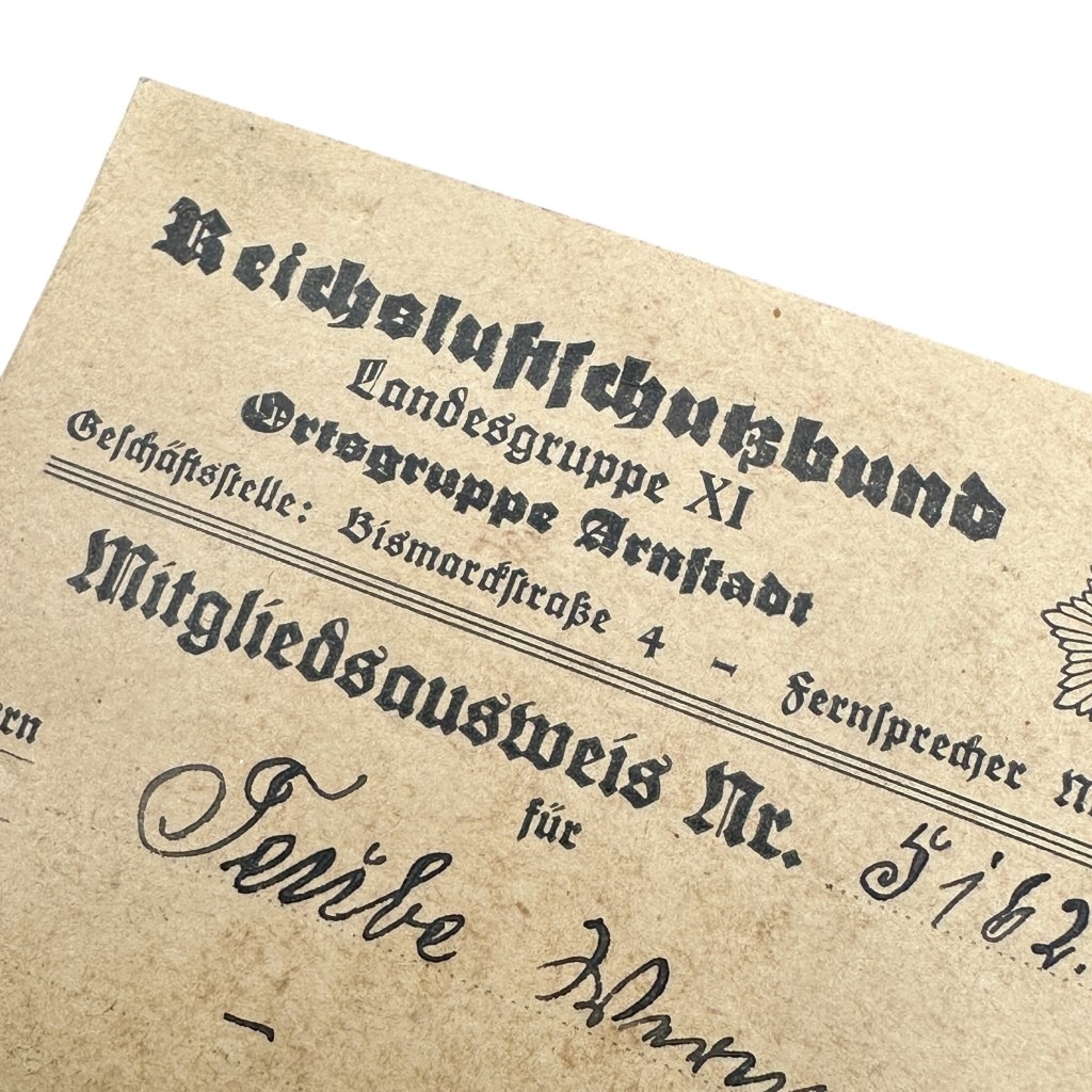 Original WWII German Reichsluftschutzbund Ausweis Arnstadt