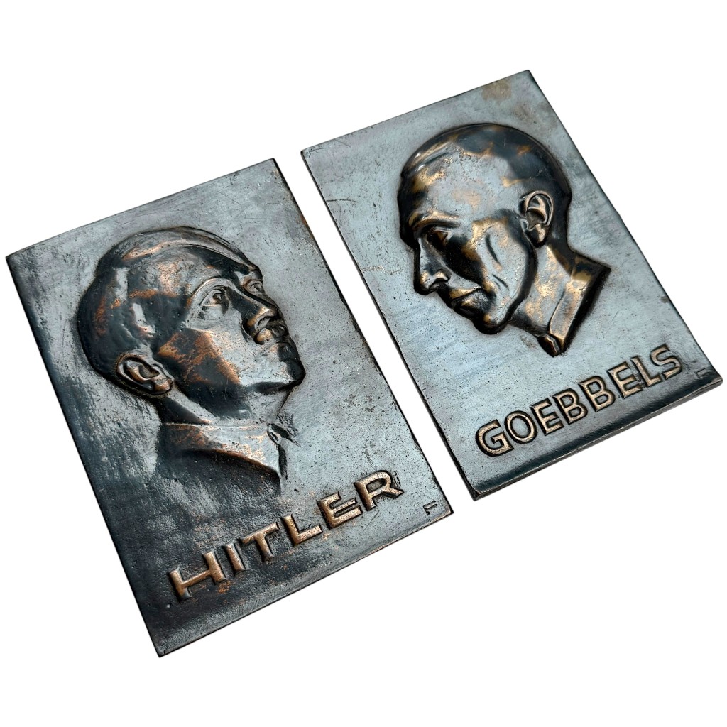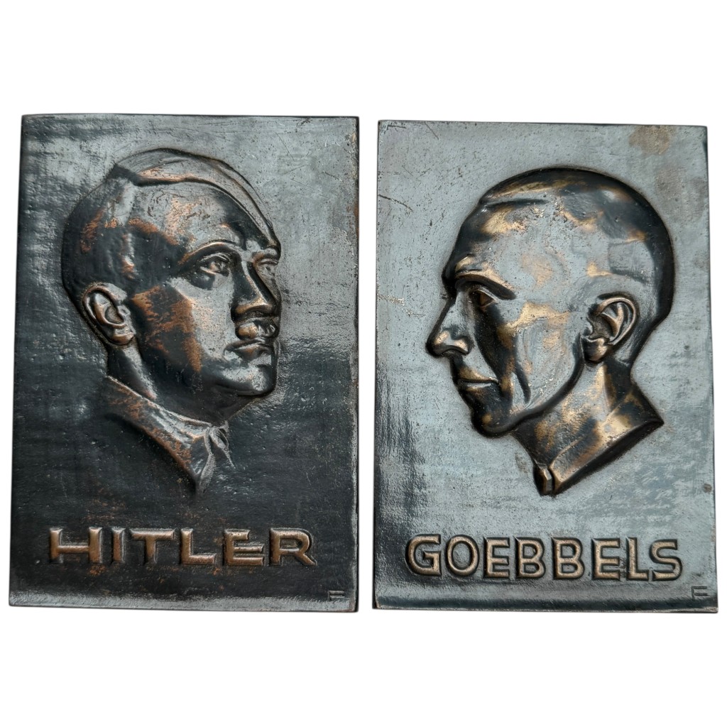 Original WWII German set Adolf Hitler & Joseph Goebbels plaques