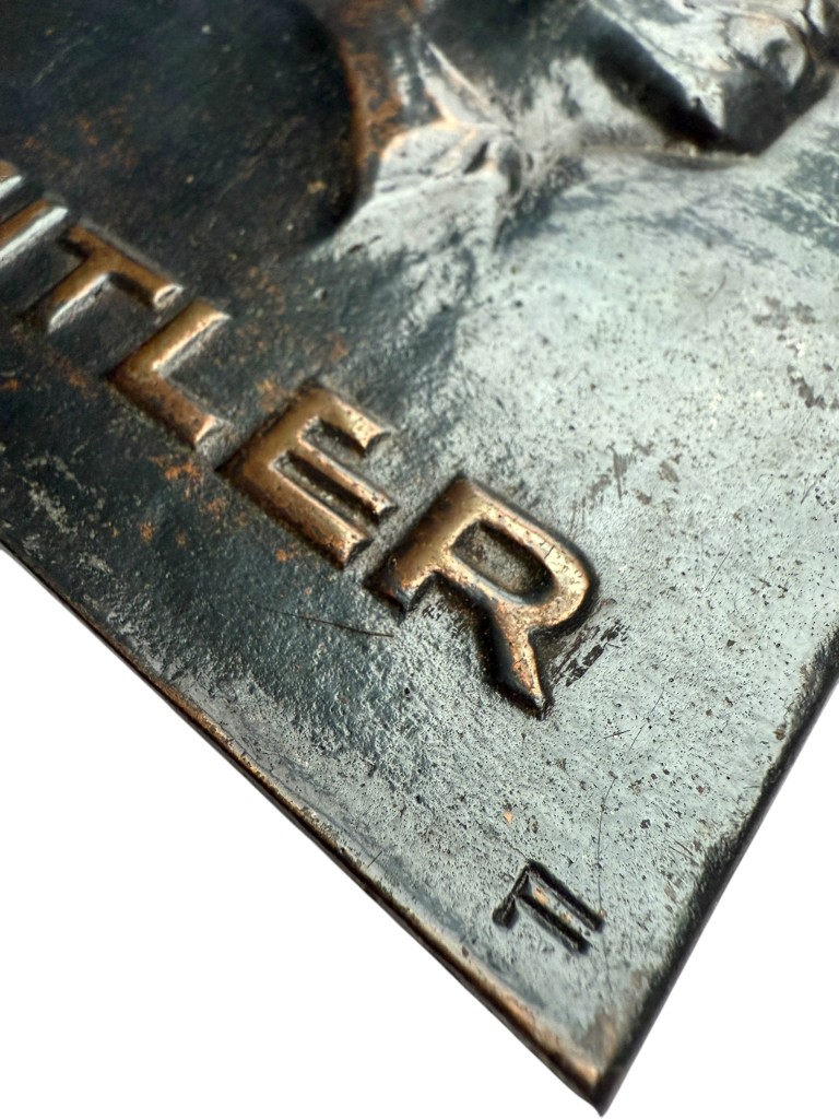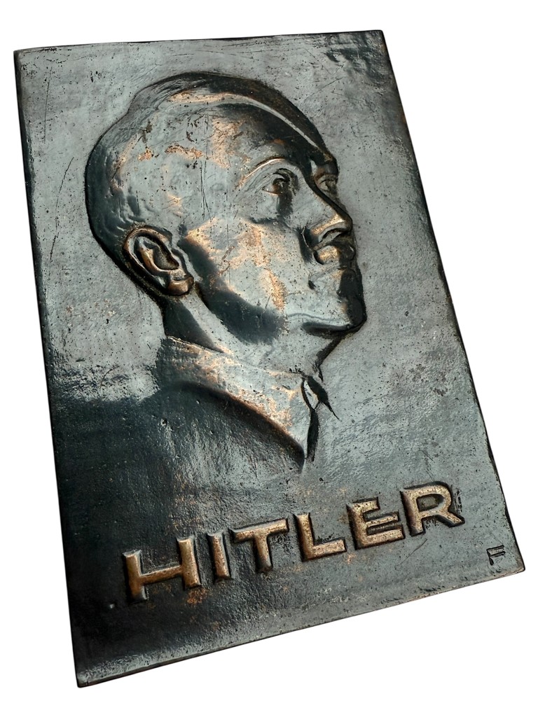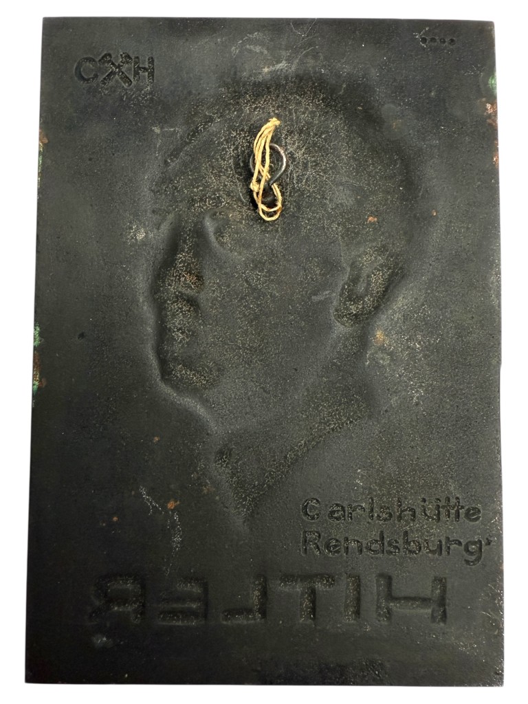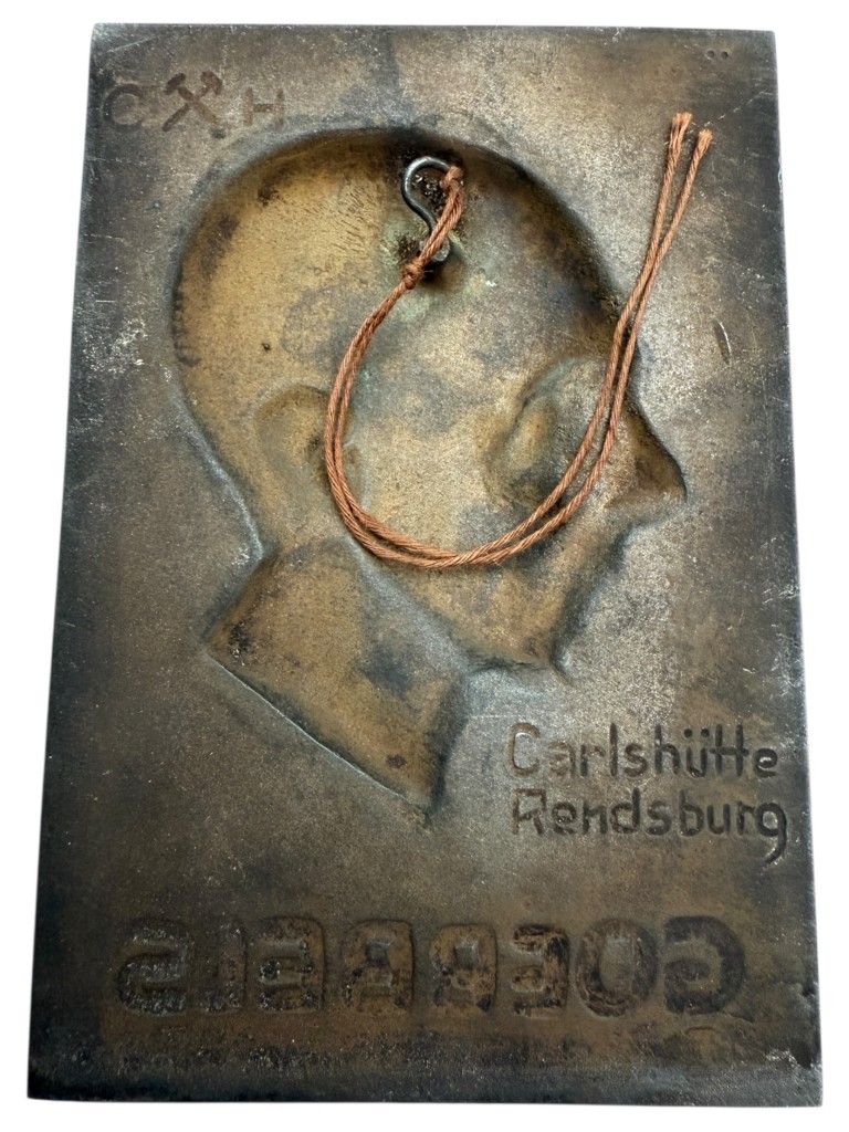 Both plaques feature a relief portrait of Adolf Hitler and Joseph Goebbels and are marked on the reverse with “Carlshütte Rendsburg” and the foundry symbol.