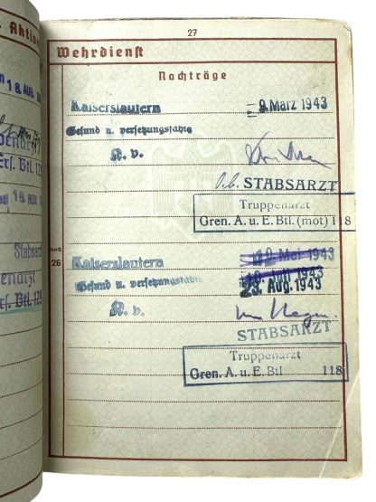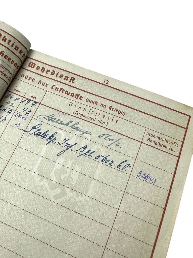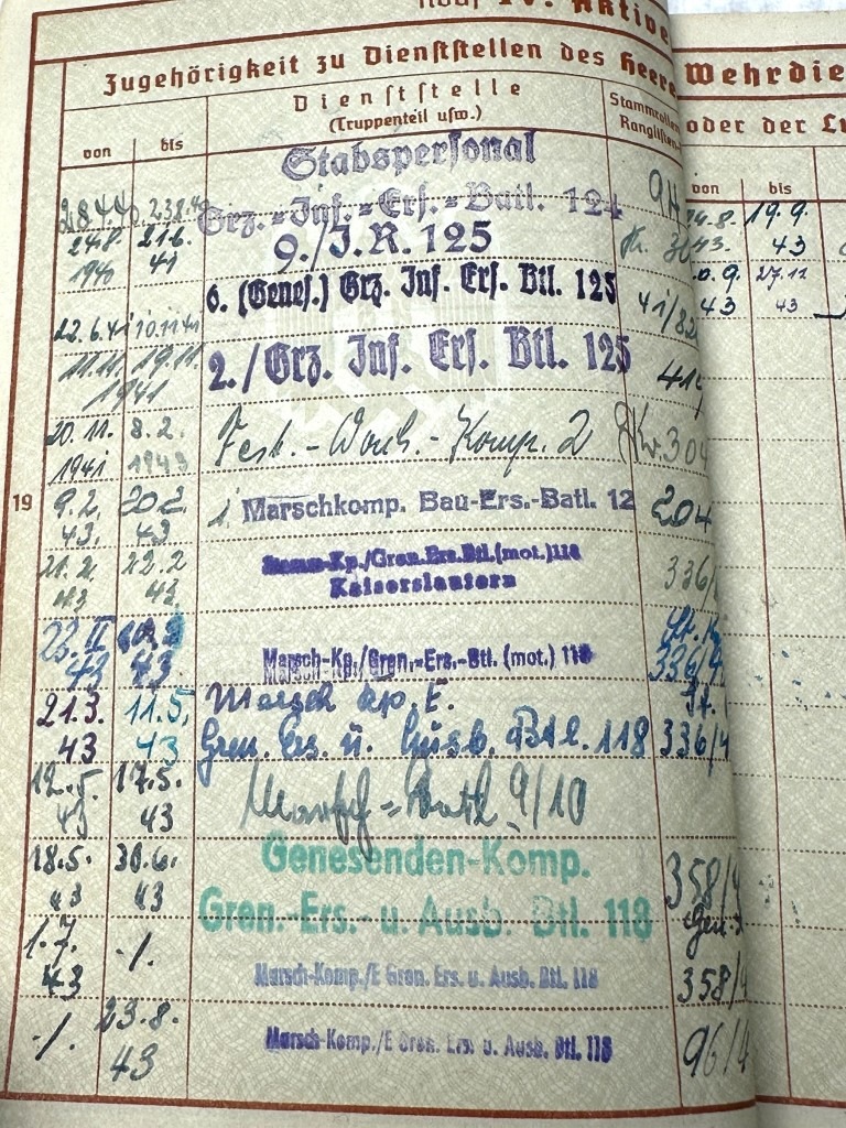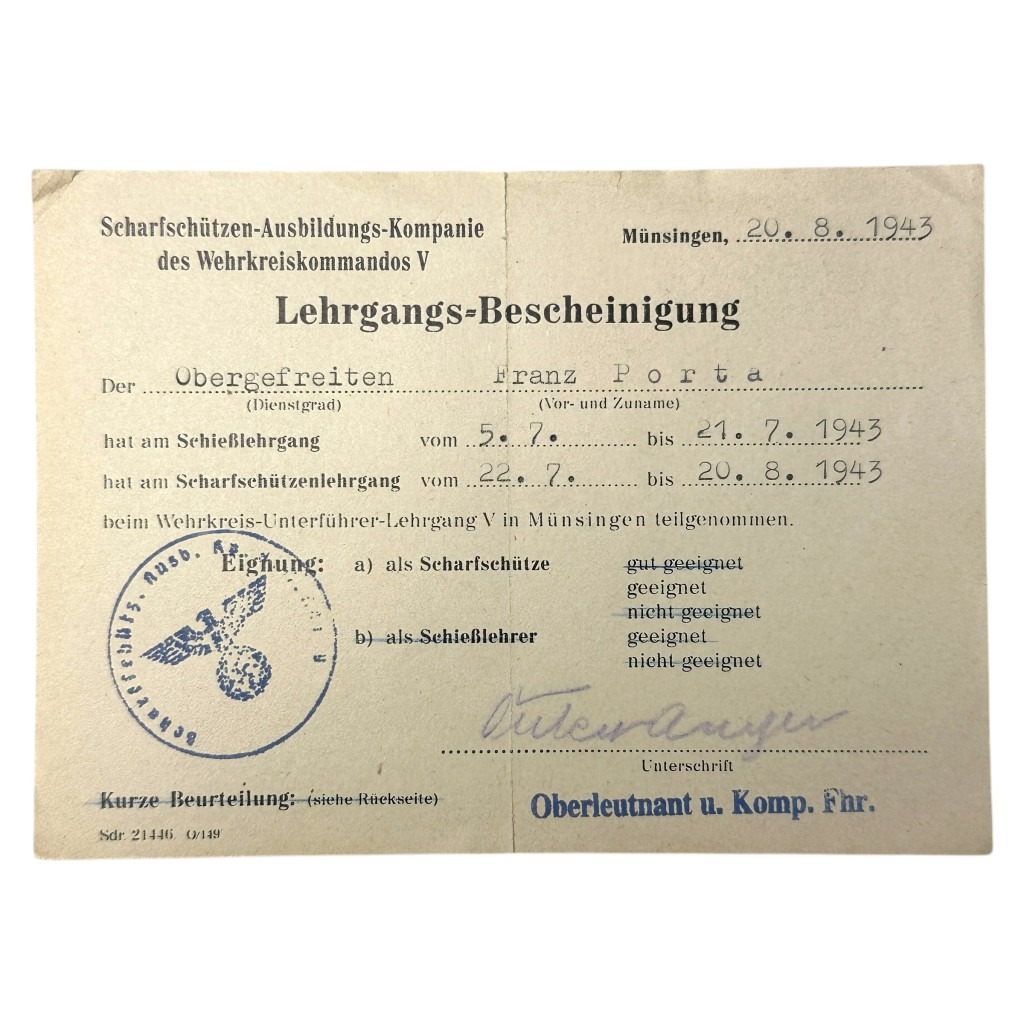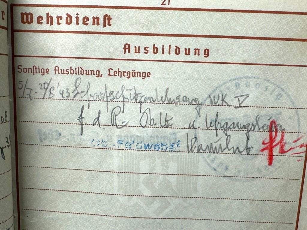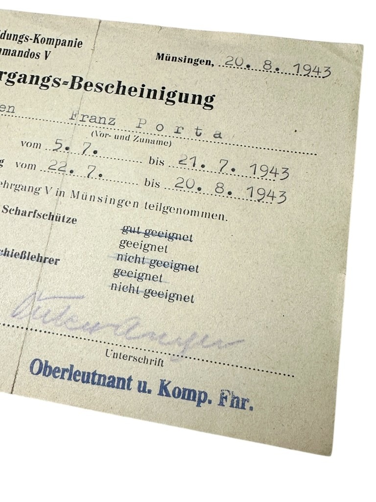 He followed the Scharschutzen-Ausbildings-Kompanie in Munsingen between July 7, 1943 and August 20, 1943.