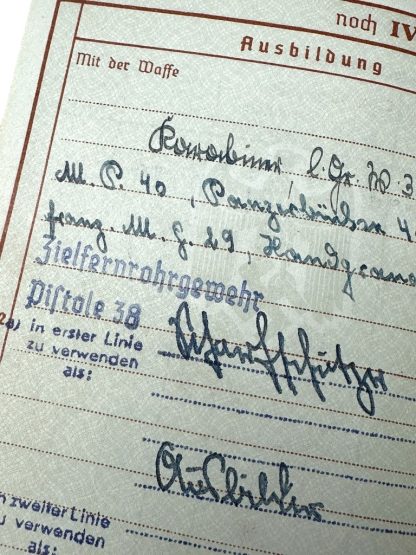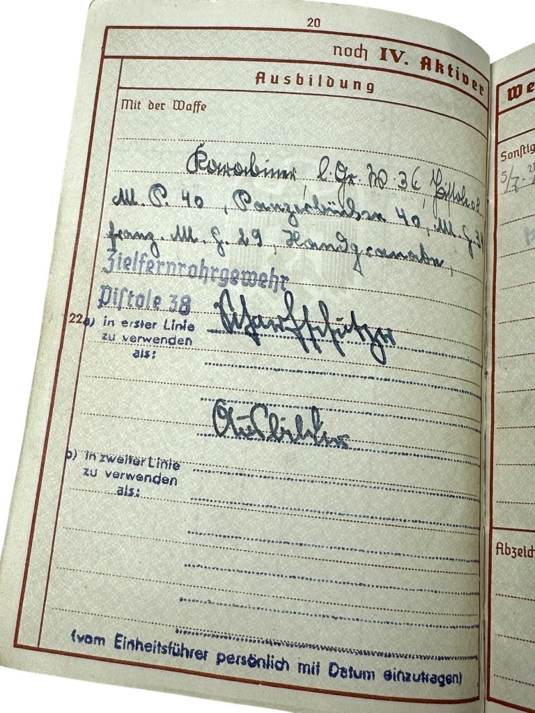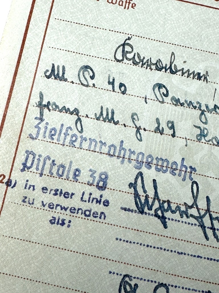 Ook in de Wehrpass is de sluipschutter opleiding en het ‘Zielfernrohrgewehr’ te vinden.