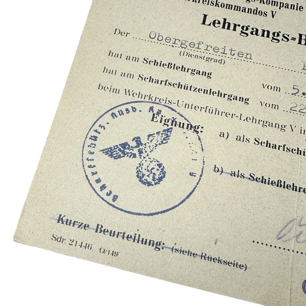 Also in the Wehrpass is the sniper training and the “Zielfernrohrgewehr”.