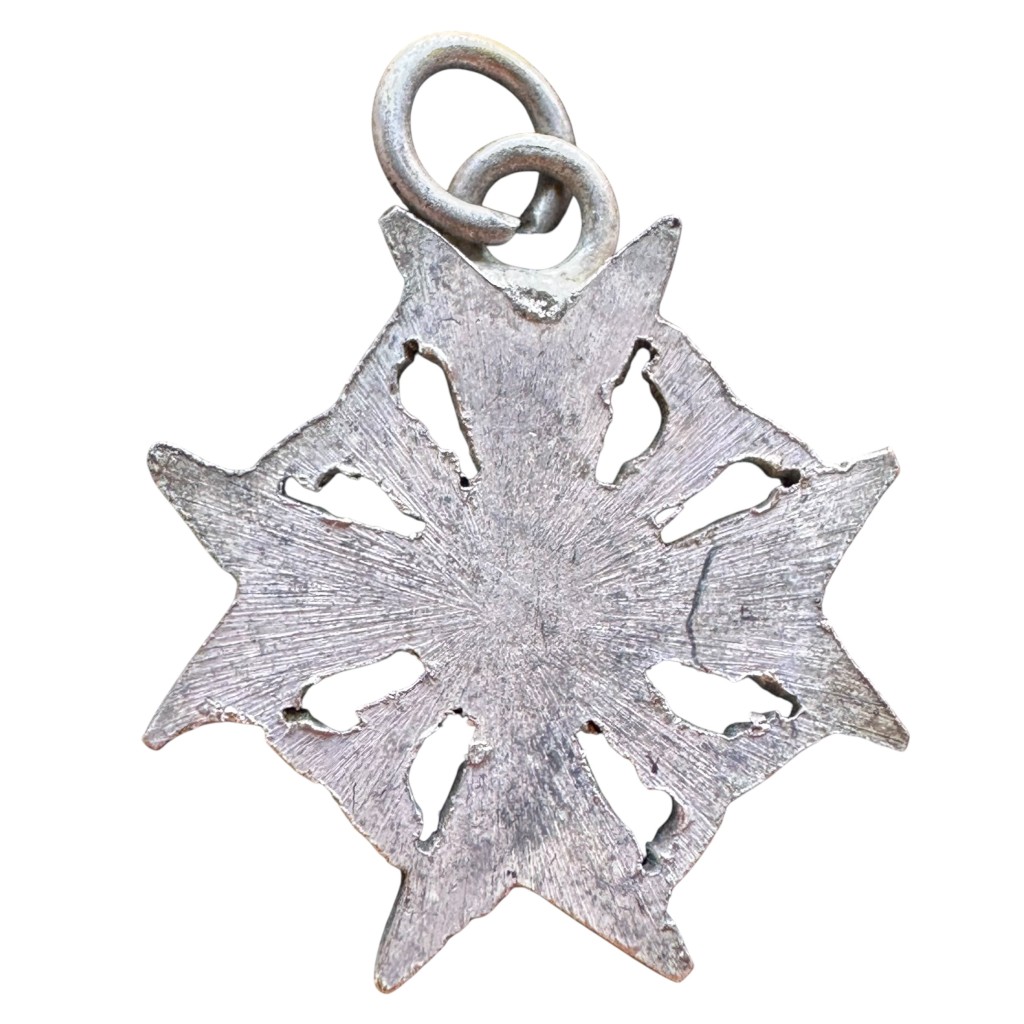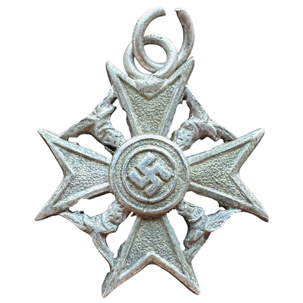 This German pendant is designed in the shape of the Spanienkreuz (Spanish Cross), a historical German decoration associated with the Spanish Civil War (1936–1939).
