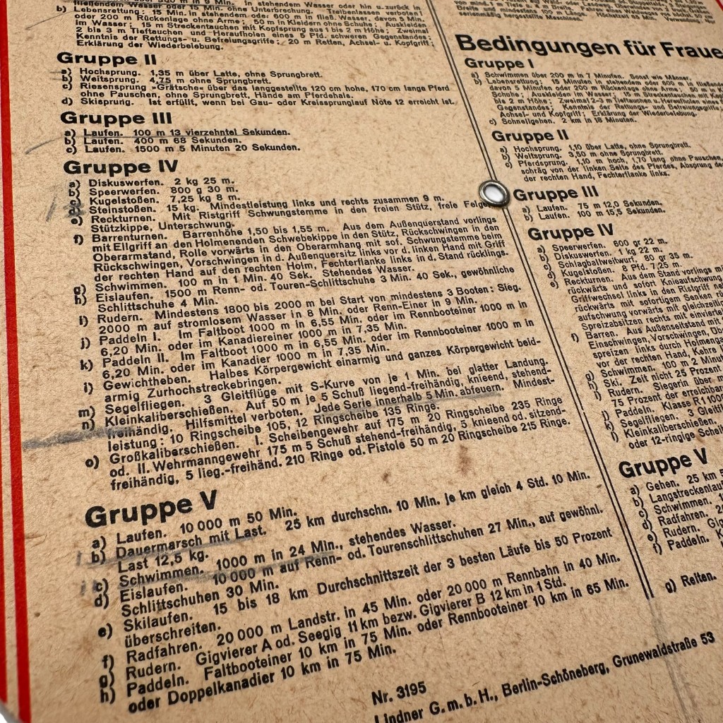 Original WWII German Sportabzeichen information disc