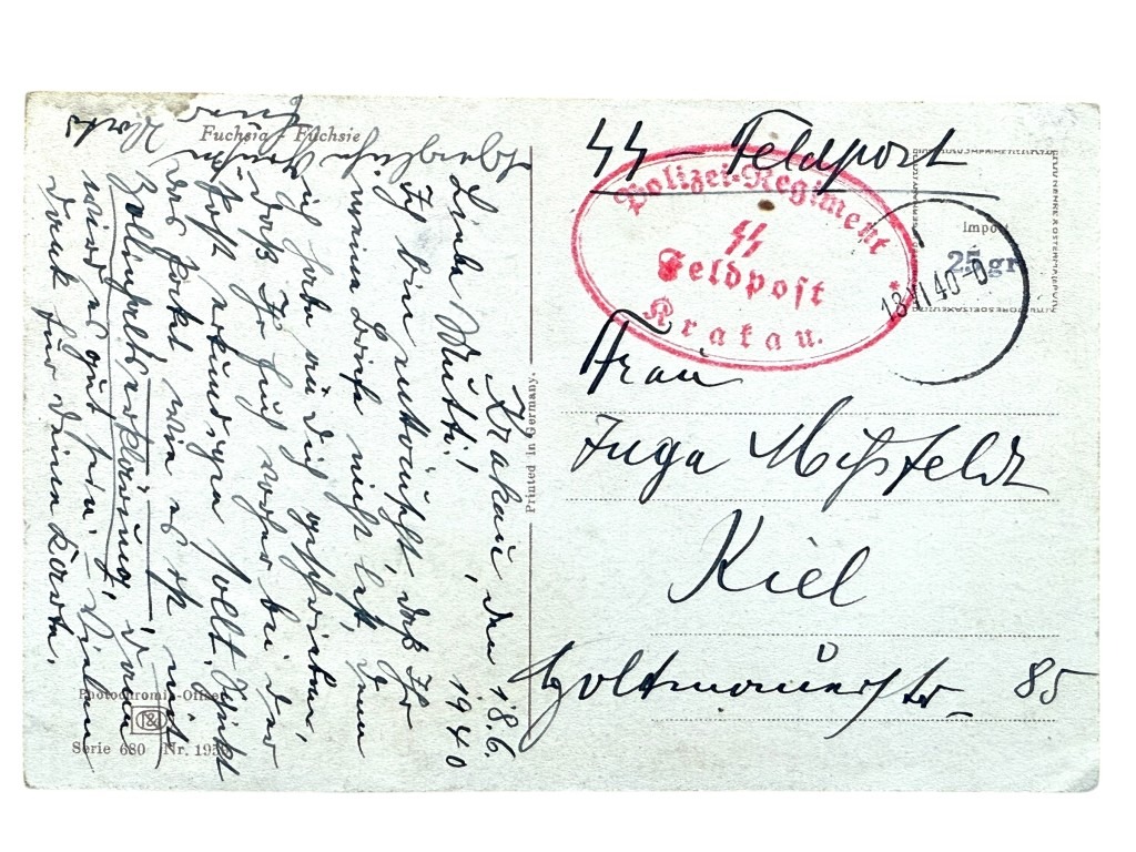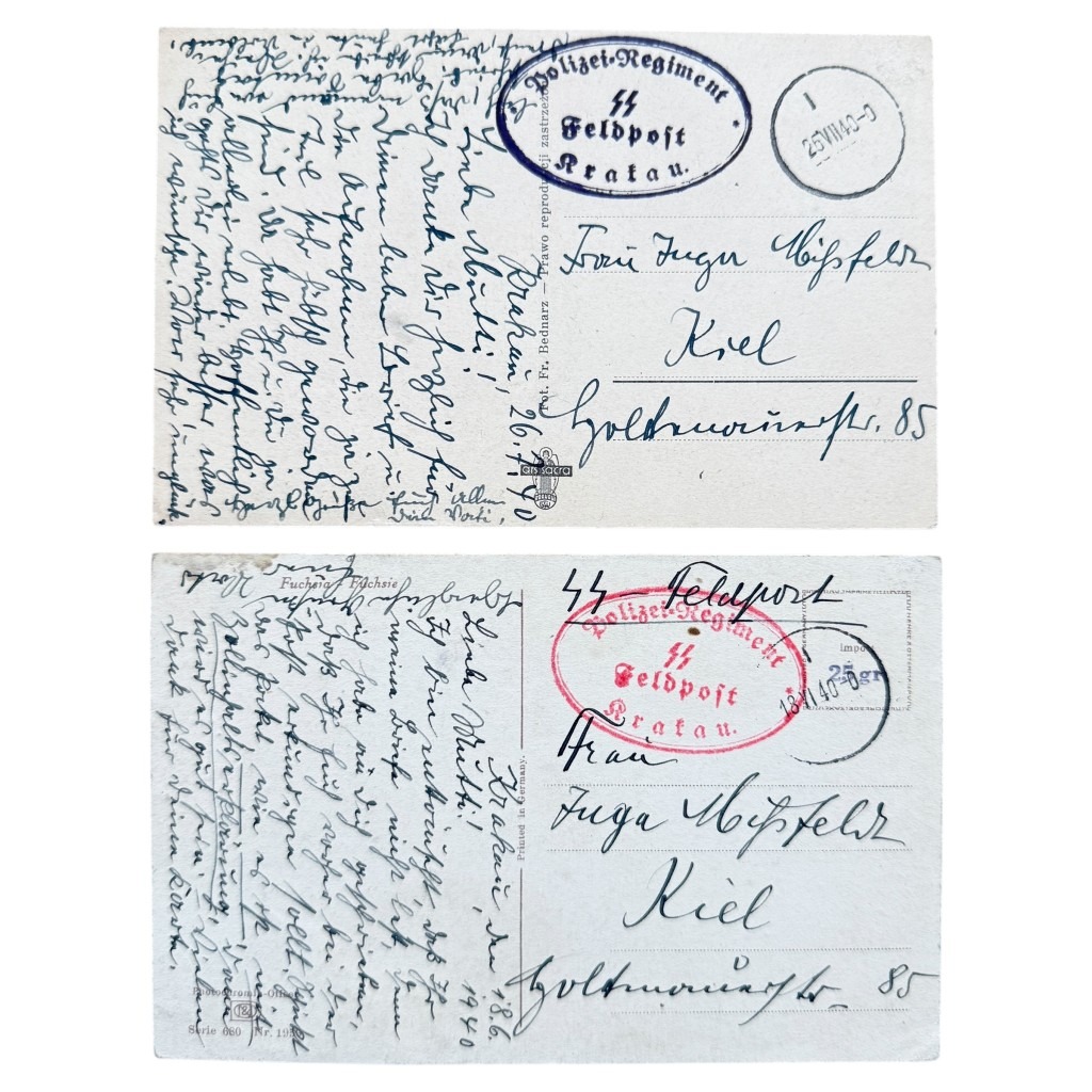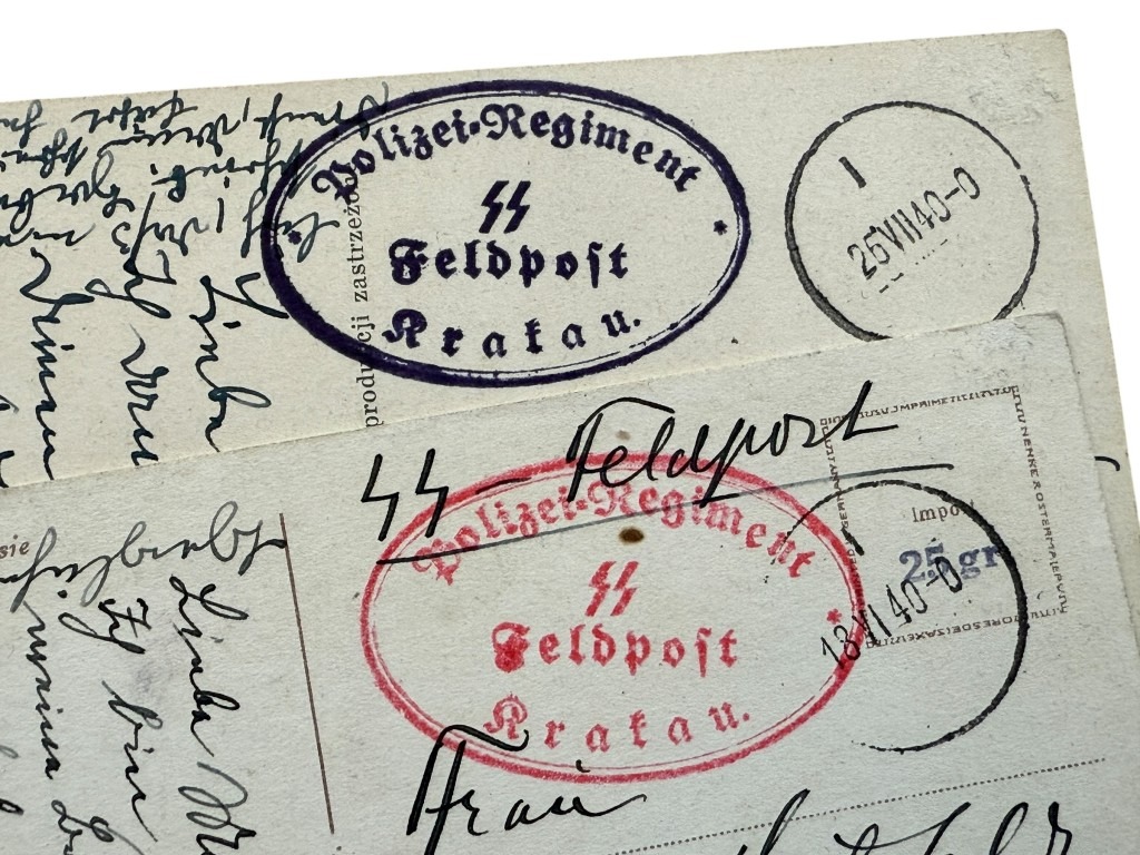These two German SS Feldpost cards are in good condition, date from 1940, and originate from a member of the SS-Polizei-Regiment Krakau in Poland.