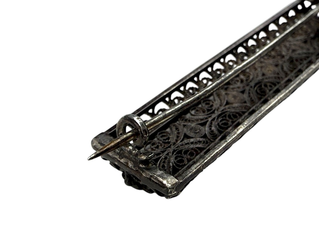 The reverse is fitted with the long period-style pin attachment, and the brooch shows a pleasing dark patina consistent with age.
